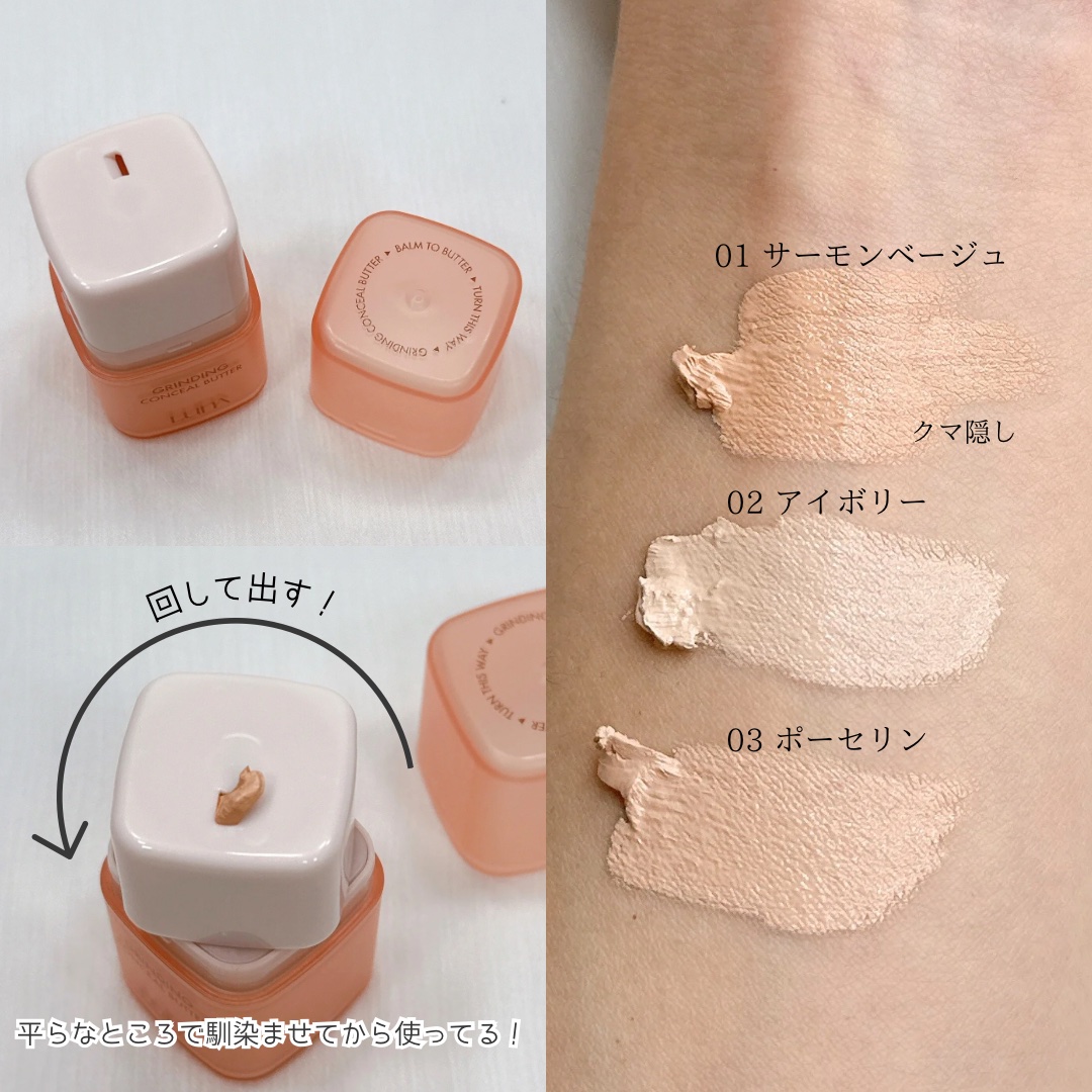 必要な分だけ削るので衛生的! バターのようにとろけて、なめらかに密着! 厚塗り不要でハイカバー! 少量でハイカバーであるのと、付属のパフの使い心地と使い勝手の良さにびっくり。 今まで使用してきたコンシーラーの中で一番好きです。