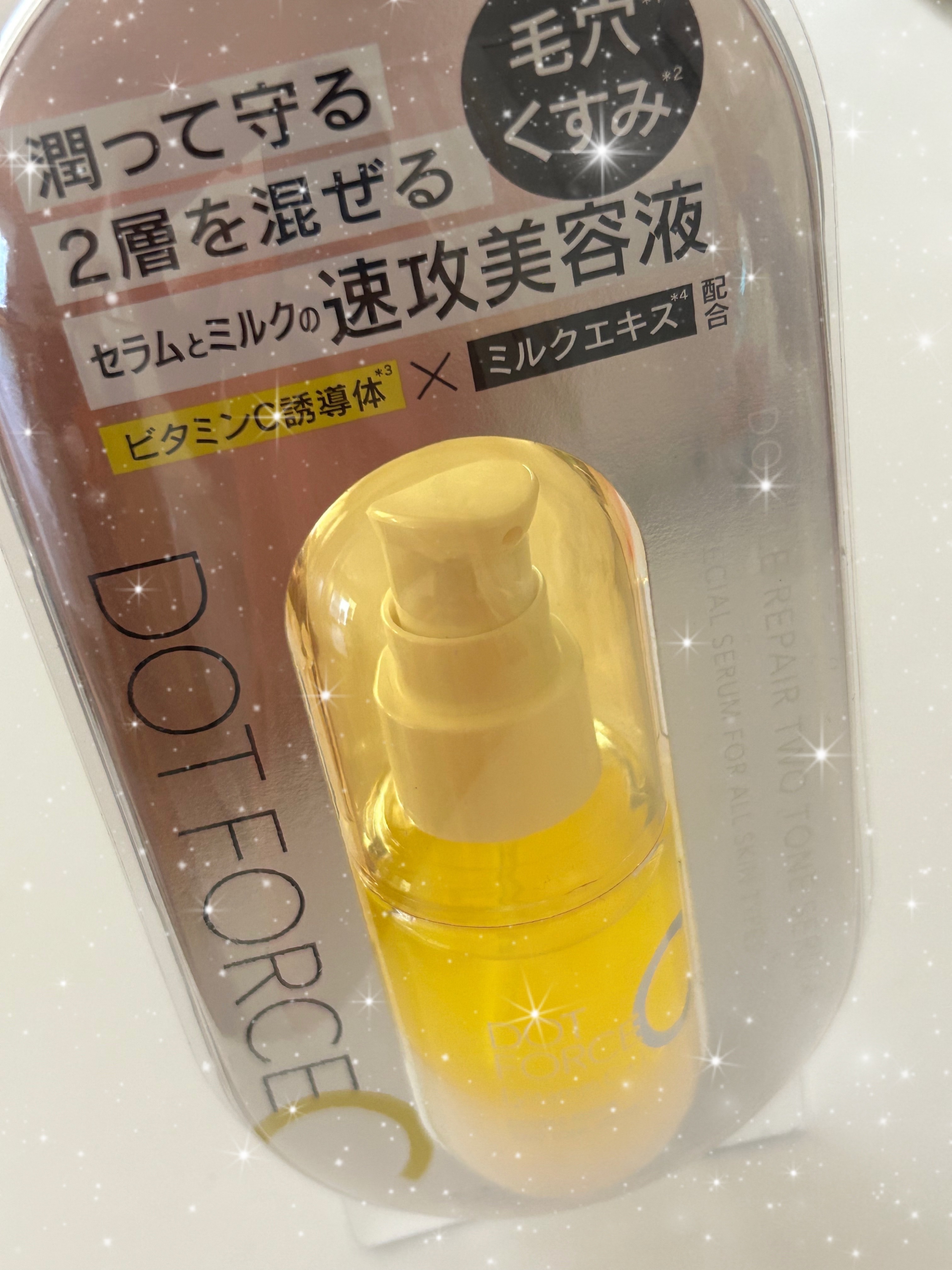 この光にかざしたときの輝きに惹かれて購入しました💖 白と黄色が二層になっていてすごく綺麗なんです💛🤍 セラムとミルクを混ぜて使うタイプの美容液だそうで新しいですよね👏 セラムとミルクのいいとこ取りができて贅沢な美容液🤤 ベタつきが少なくて使いやすいのに保湿力はちゃんとあってお肌がもちもちになるので気に入りました🙌🎵