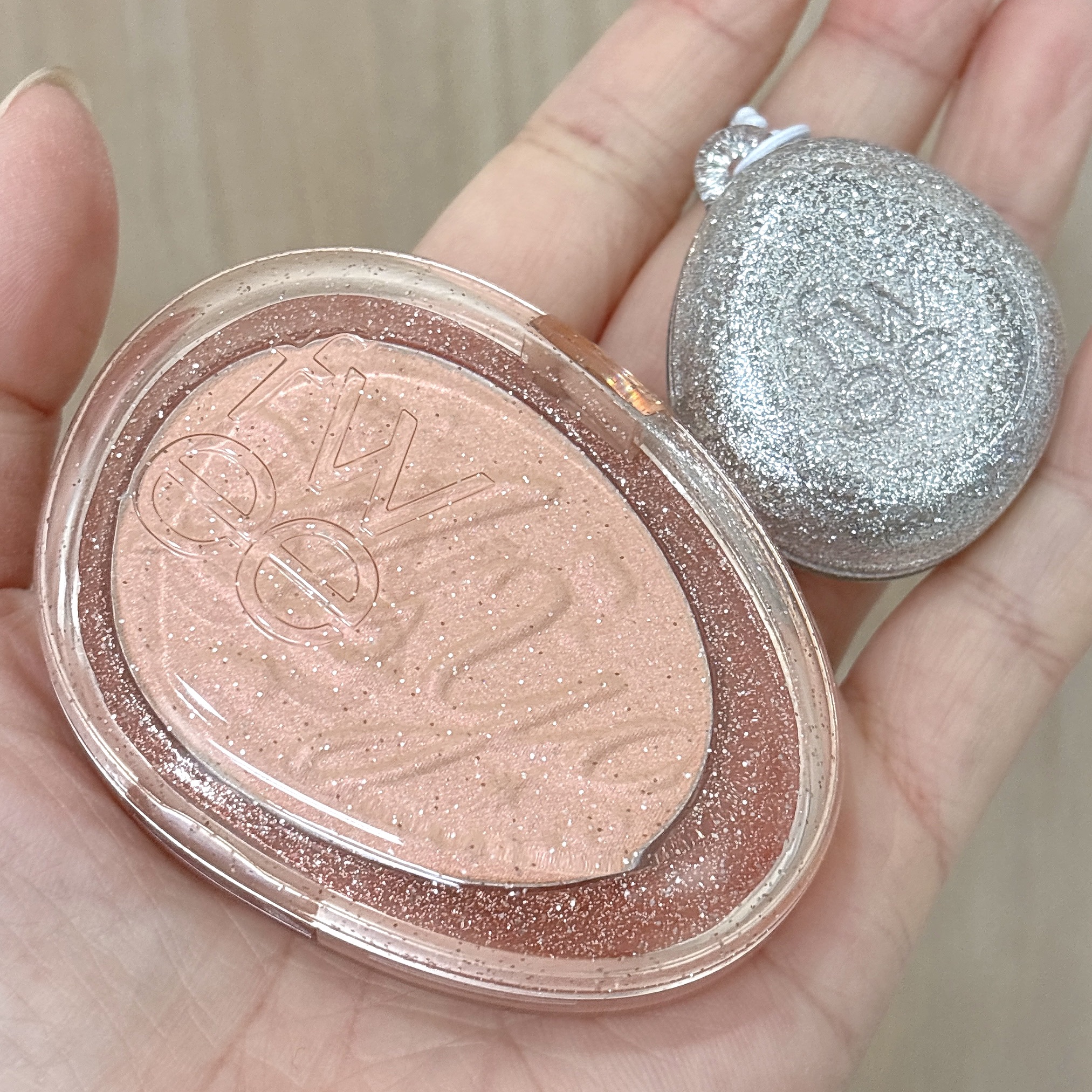 誕生石モチーフのハイライター✨ 8月ムーンストーンをイメージしたカラーです オレンジベースでピンクの偏光ラメがキラキラ🤩 ラメは小粒なので使いやすいです。 パケはコロンとしてラメが埋め込まれていて、持ってるだけでテンションが上がります!