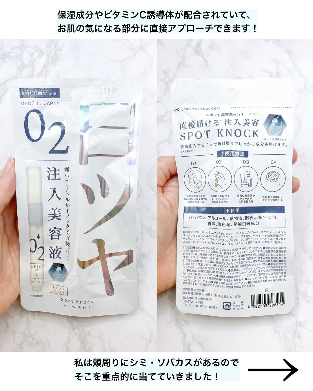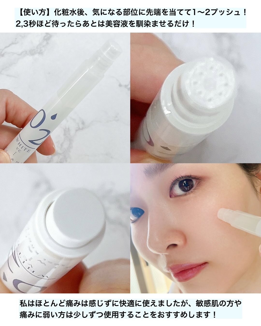 3月20日に発売の医療用マイクロニードルから着想された注入美容、スポットノックWHITEを使ってみました☺️ペンのような形状で、ノックすると、先端部のニードルから美容液が出てくるというアイテムです。肌に直接美容液を注入というと、何となく痛みが...