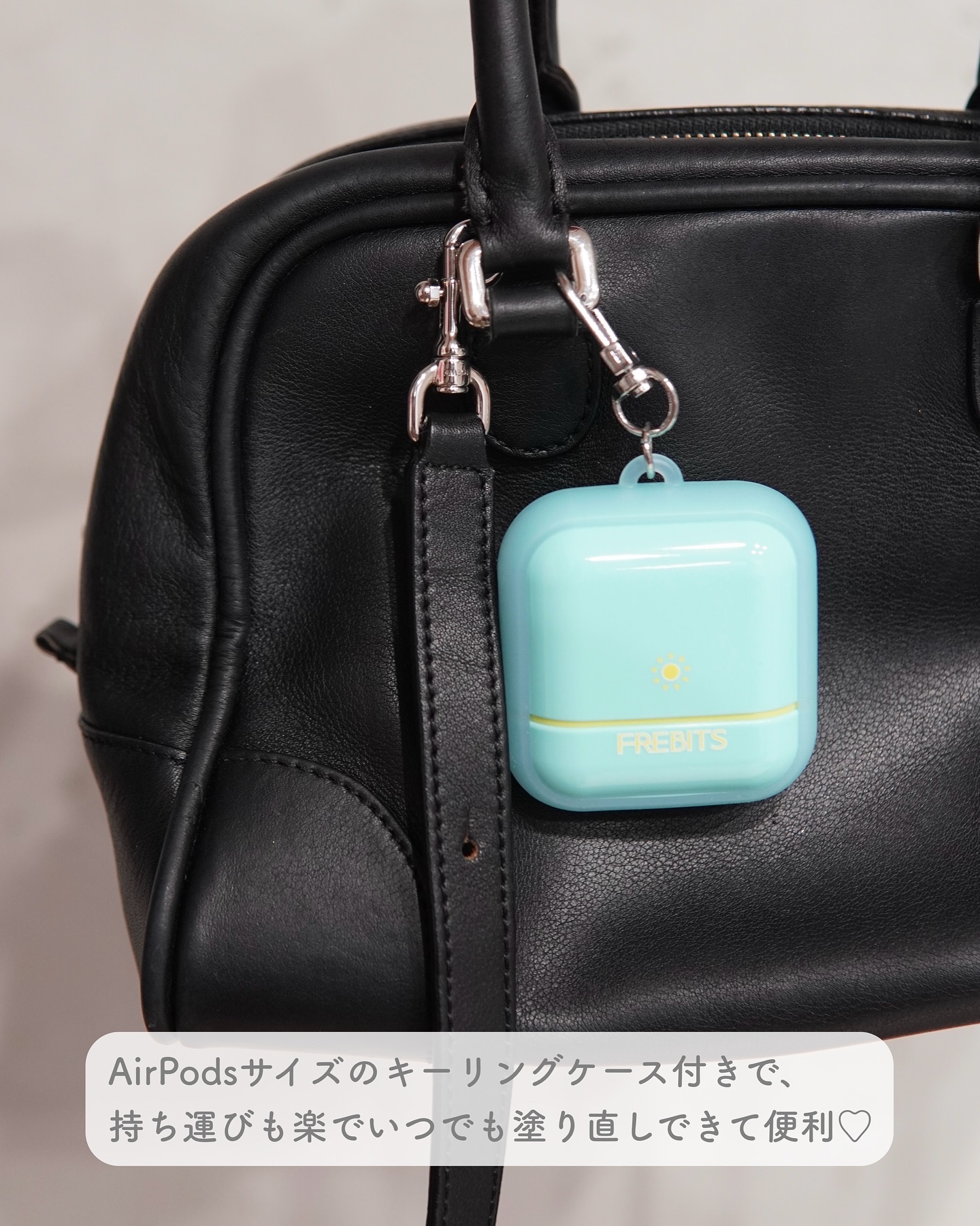 - AirPodsサイズのキーリングケースを利用して携帯しやすいサンスティックで、さらさらと柔らかく塗って手足、首だけでなく老若男女問わず使いやすいサンスティック