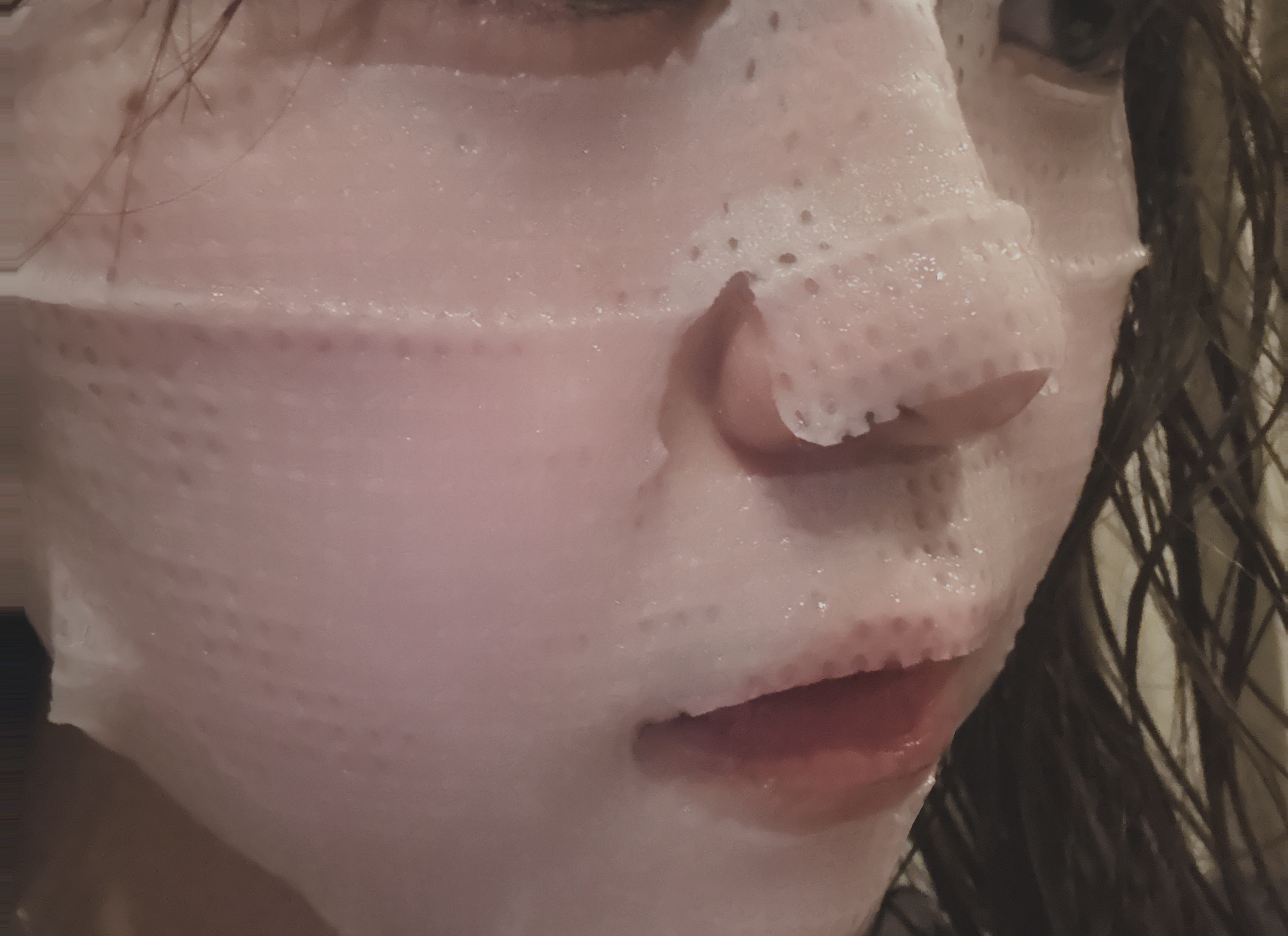 めちゃくちゃ大きいシートなので隙間なく贅沢に貼れます! なんか湯葉みたいなシートでピッタリ、ほんとぺたっとはりつきます笑 しっとりもちぷる肌になりました。皆さんが仰るように肌のトーンも上がります!!