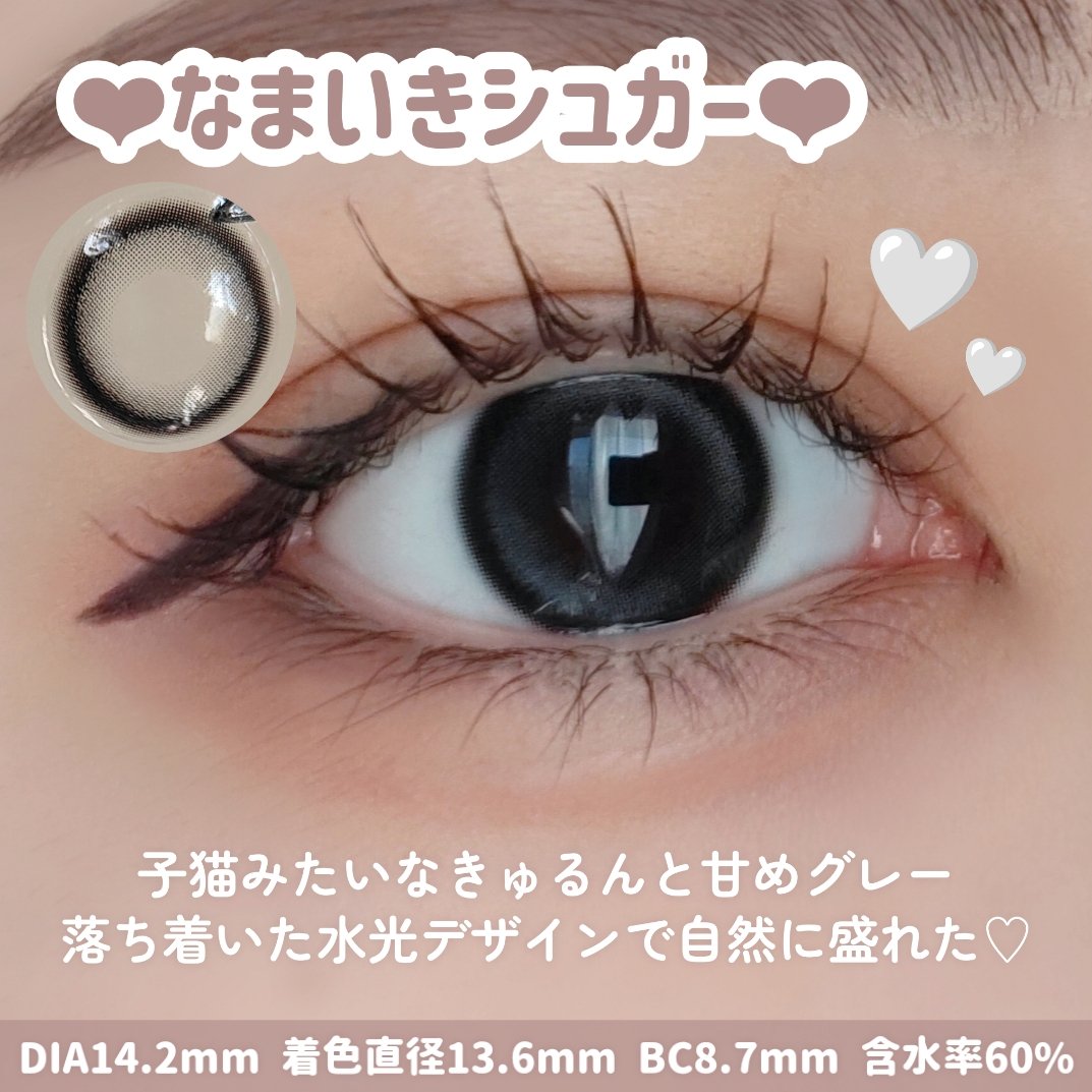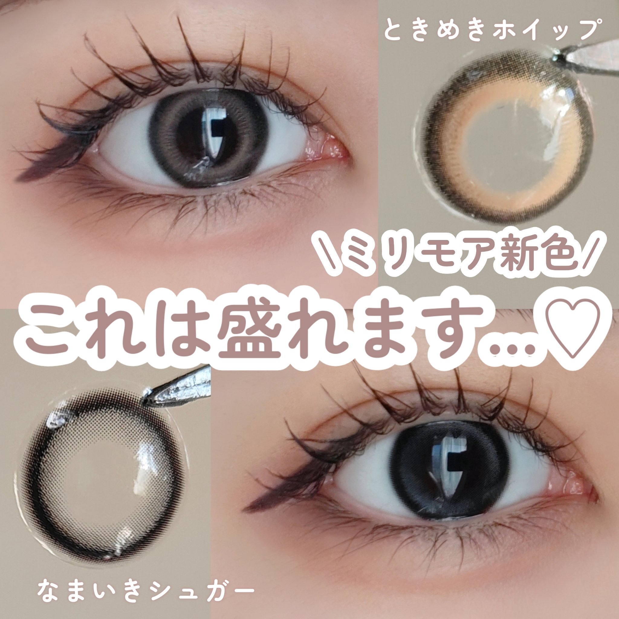 ホイップみたいなふわ太フチとときめくクリームベージュできゅるんとドーリーな瞳 こっそり仕込んだ水光グレーで子猫みたいなうるきゅるな瞳 摩擦レスカラコンで1日中うるおい続いてつけ心地も◎
