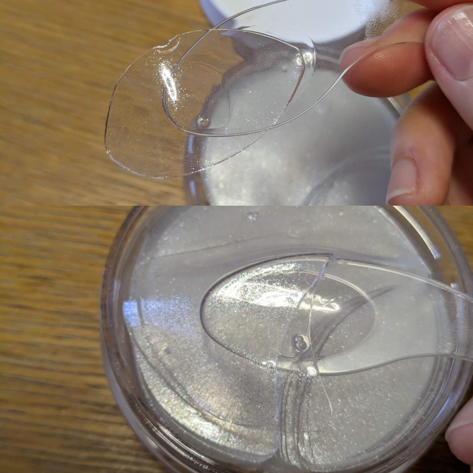 マスクを取り出すと深いいい香りがします🤩リラックスする深い香りです天然精油を配合しています🥰 液が弾力・粘りがあり有効成分が濃縮されているのが分かります パック中も香りがして気持ちがリラックスしました💆 肌がコーティングされたようです👍 香り高く濃縮されたクリームです こちらも香り高くて気持ちがとても癒されます🌺 手のひらに肌が吸い付くほど潤いました✨