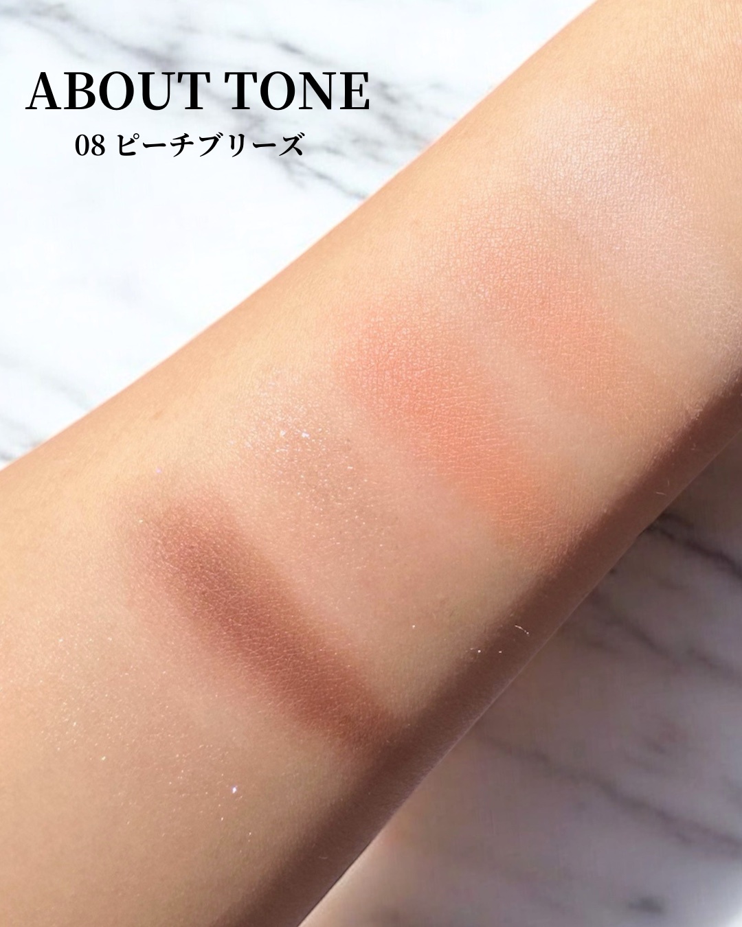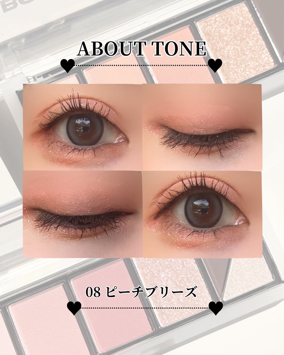 07 ピンクモーメント: 華やかなクールピンク/ミュートなベリートーン 08 ピーチブリーズ: はつらつとしたピーチ/ミュートなオレンジトーン しっとりした粉質で粉飛びなく使いやすいパレットです♩