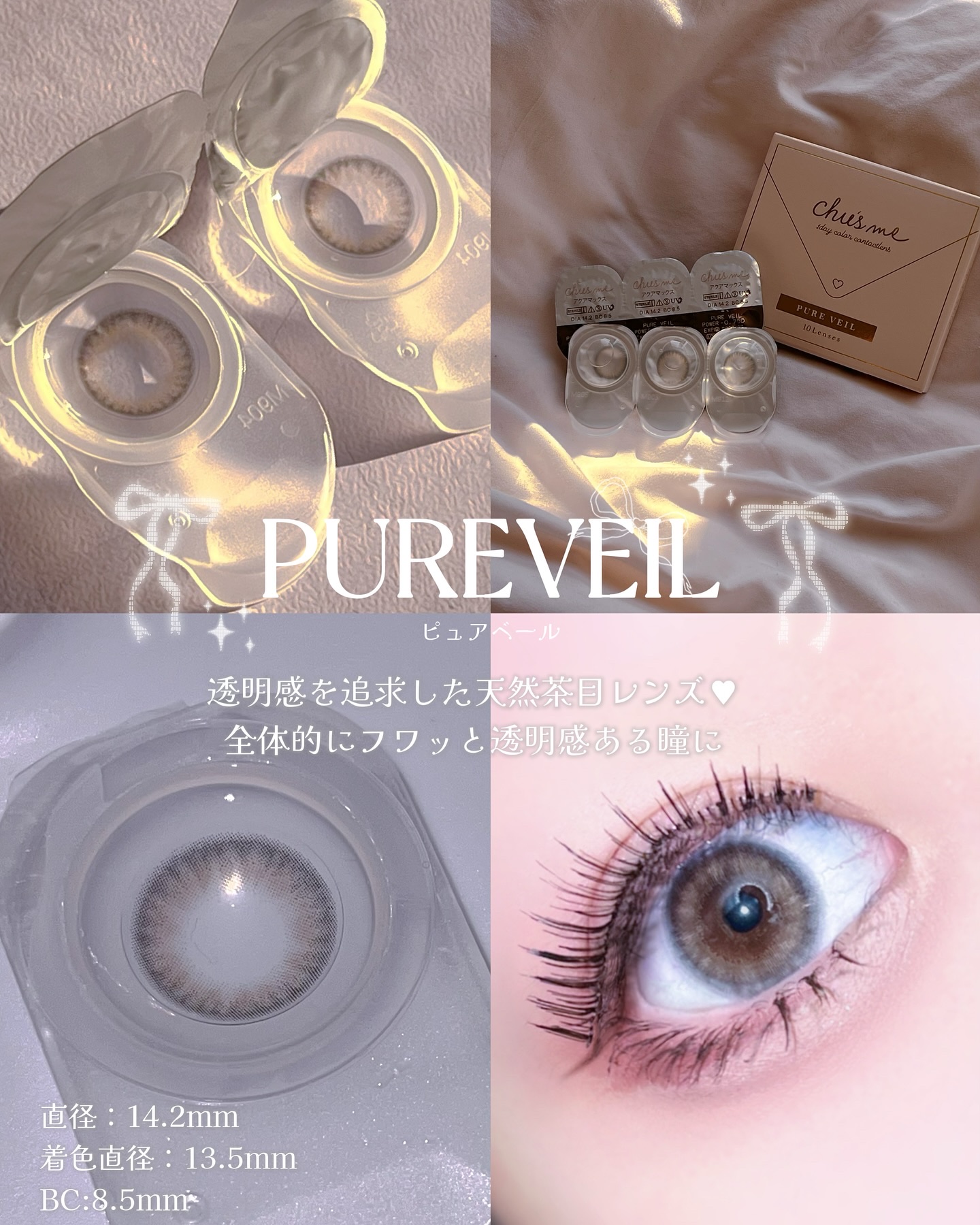 ゆうこすプロデュースの大人気"Chu's me"の1dayに新色が3色でる〜! 天然茶目レンズで生まれつき色素が薄いような瞳に!透明感を追求したナチュラルカラーで着色感も大きすぎず、瞳に吸い込まれるようなデザインがカワイイ❣️ じゅわっと瞳にツヤをしのばせる、うるめきグレー。ブルーグレーでイエベ・ブルべ問わず似合うカラー!
