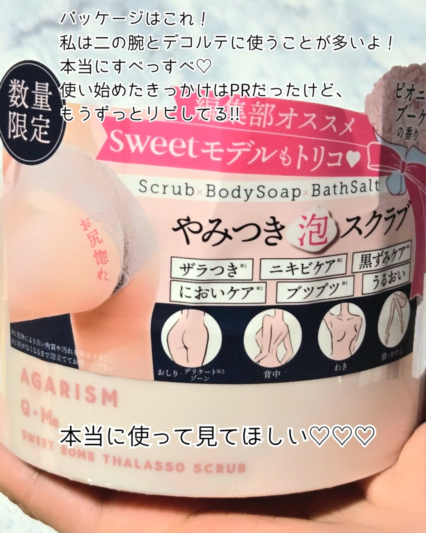 商品詳細情報AGARISM キューミースウィートボムタラソスクラブ ピオニーブーケの香り