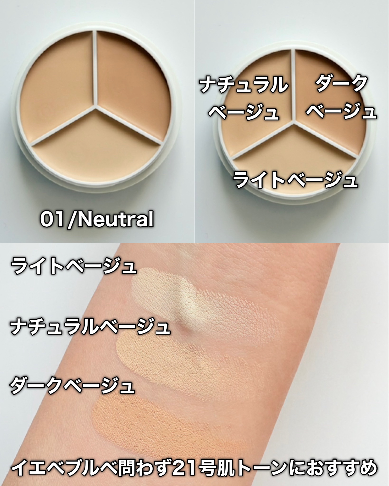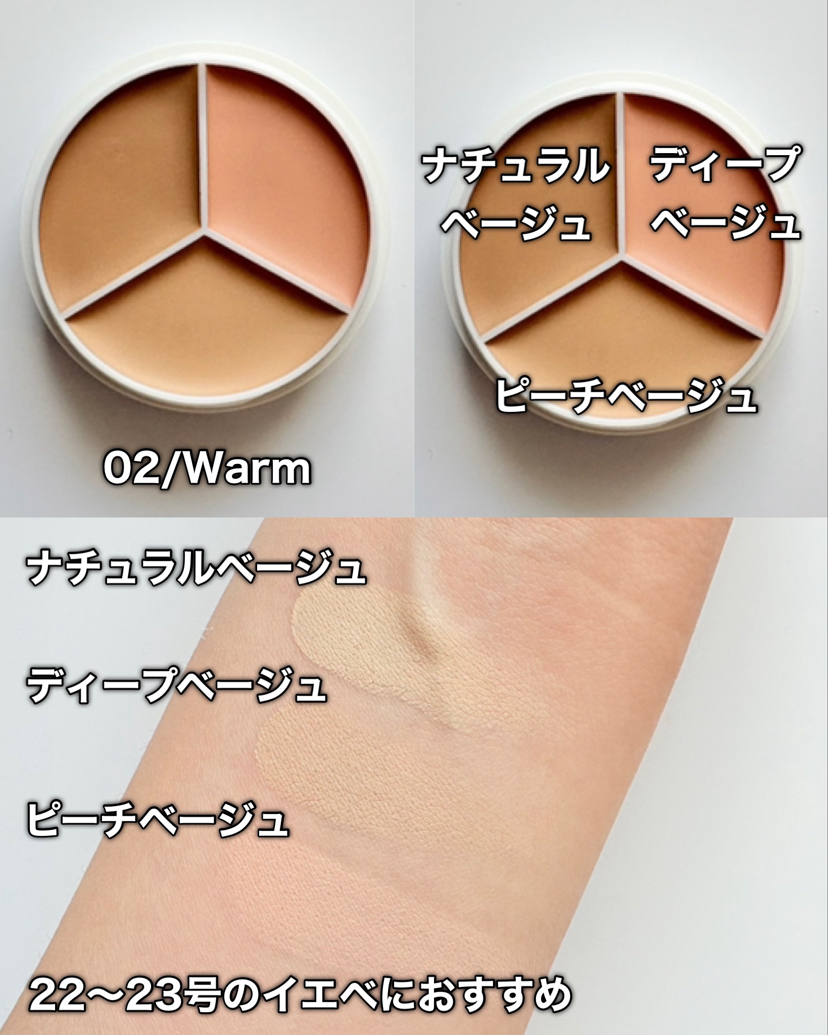 - クマからニキビ跡、シミまでこれ1つでカバー。 3色タイプだからこそ、気になるところや肌色を選ばずにご使用いただけます。 リキッドタイプを圧縮した高濃度バームのため高カバー高密着*¹を実現。 コンシーラーだけでなくコントアとしても使用可能です。 *1メーカー比