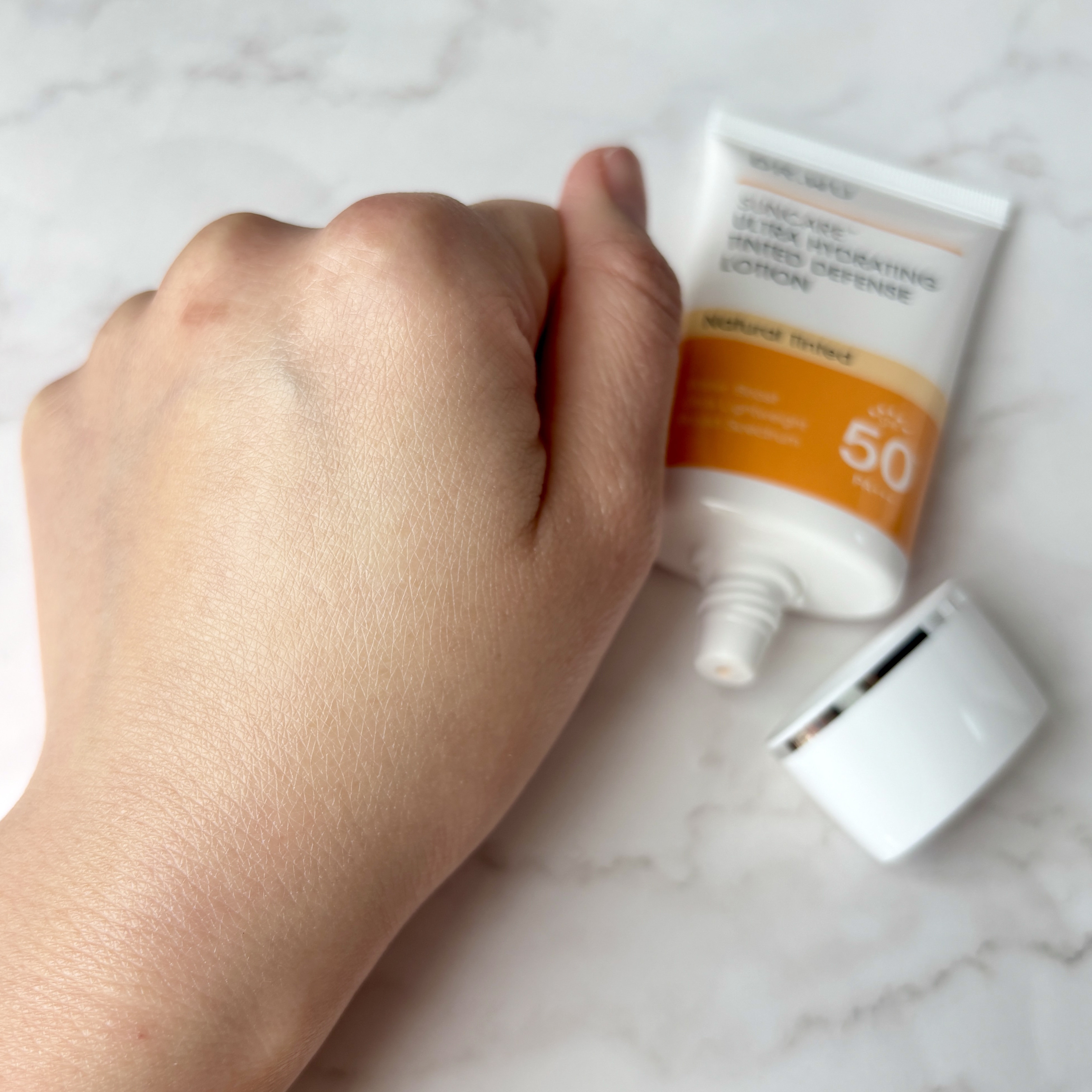 敏感肌の方でも使えるよう設計した『サンスクリーン+モイスト』 ヒアルロン酸Naや数種類のセラミドを贅沢に配合。水のように軽い使い心地でみずみずしいテクスチャー。 白浮きが気にならずベージュ色でほんのり色付き肌の色を補正しトーンアップ効果も◎