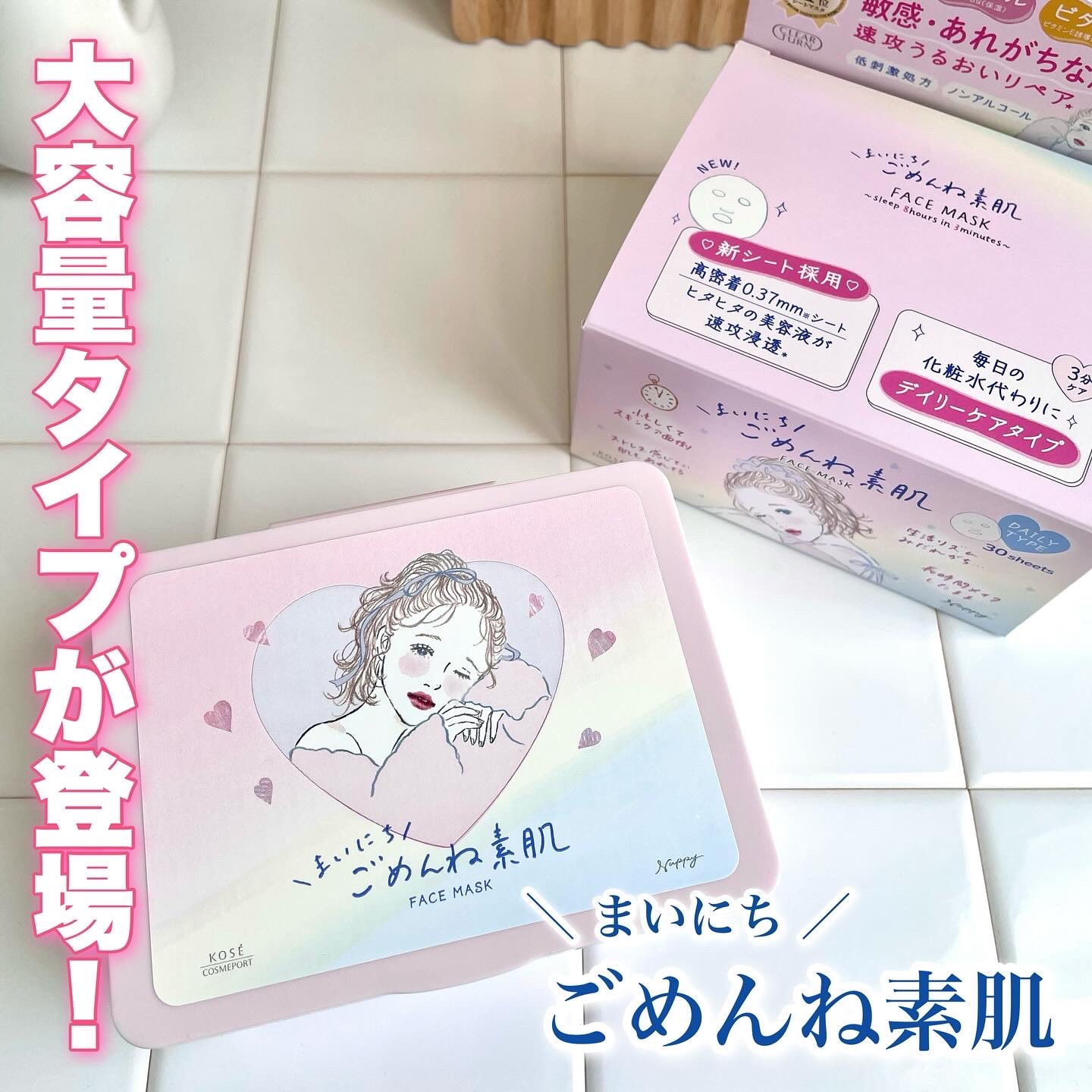 - 毎日の化粧水代わりに 敏感・あれがちな肌を速攻うるおいリペア*できる 『まいにちごめんね素肌マスク』 ①化粧水代わりのクイックケアで、負担をかけがちな肌を速攻うるおいリペア* たった3分のクイックケアで美容液がたっぷり浸透*1✨ 外的ストレスや*2不規則な生活の影響を受けやすい肌も健やかな肌へ♪ ②あれがちな肌にもやさしい使い心地。低刺激設計 弱酸性・無香料・無着色・無鉱物油・アルコールフリー・パラベンフリー・紫外線吸収剤フリー・シリコーンフリーの低刺激処方。やさしい使い心地です。 *お手入れのこと *1角層まで *2乾燥による刺激のこと