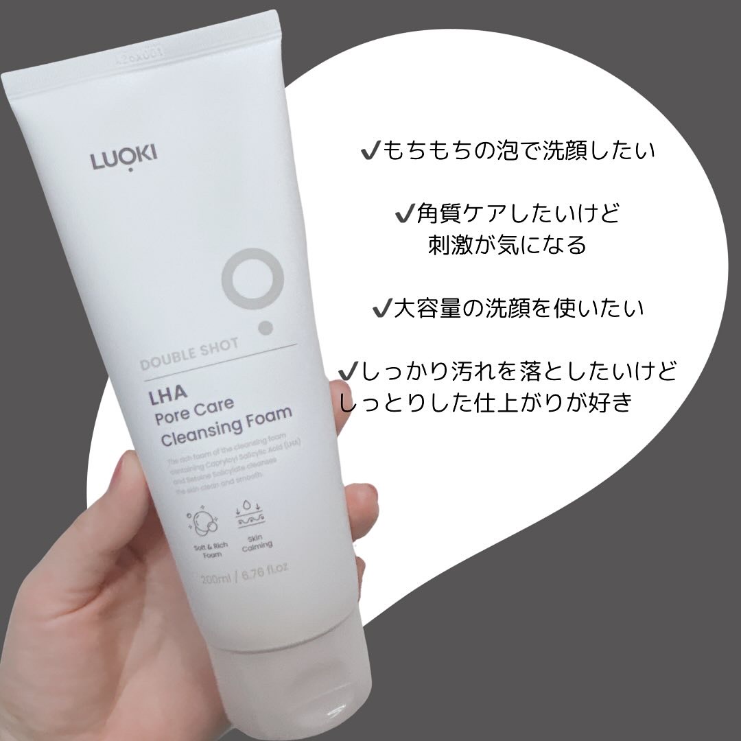 第四世代角質ケア成分のLHAが含まれた洗顔フォーム🫧 LHAとは?💭 韓国の高級エステで話題になったLHAは、AHA・BHA・PHAの跡を継ぐ第四世代角質ケア成分で、肌のバリアを損なわない低刺激成分です💚 泡立ちはとても良く、泡立てネットを使用するともっちもちな濃厚泡が簡単に作れます🤍 濃密泡がお肌に吸着するように洗え、洗い流すとスッキリするのにすぐに乾燥したりつっぱったりはしませんでした🧡 肌トーンも明るく見えるような気がしました😍💞 LUOKIから日本公式Instagramアカウント( @luoki_jp )が開設されました♥️
