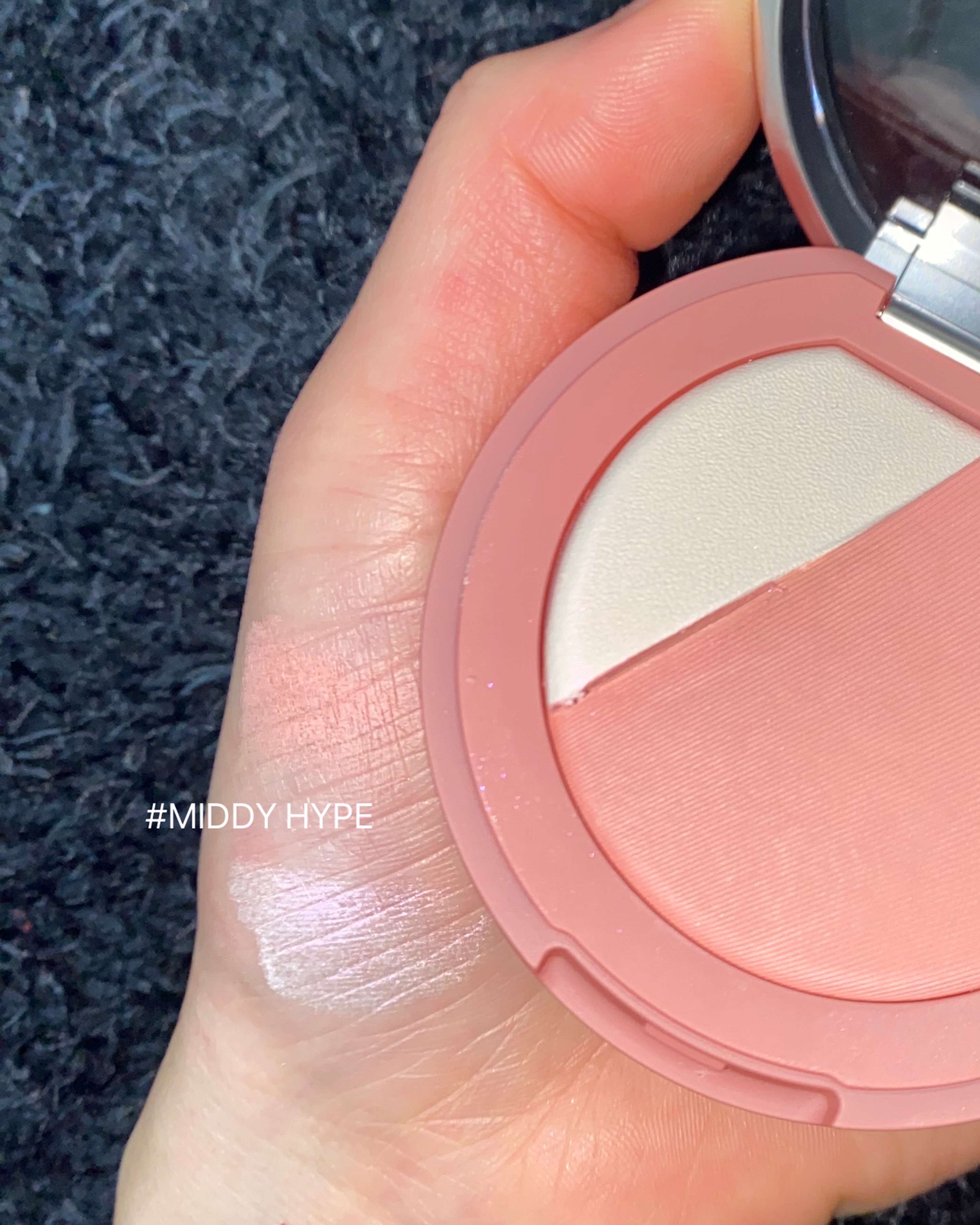 コントラストカラーとグラデーションカラー♡ 色相環の反対色と隣接色を利用したチークとハイライトがベストバランスを実現🖤🤍 ナチュラルに発色してくれるから自分好みに調節しながら使えるし、自然に可愛くなれる! チークのふんわり発色感、オーロラハイライトの輝き💯 ぜひ試してみてください♡