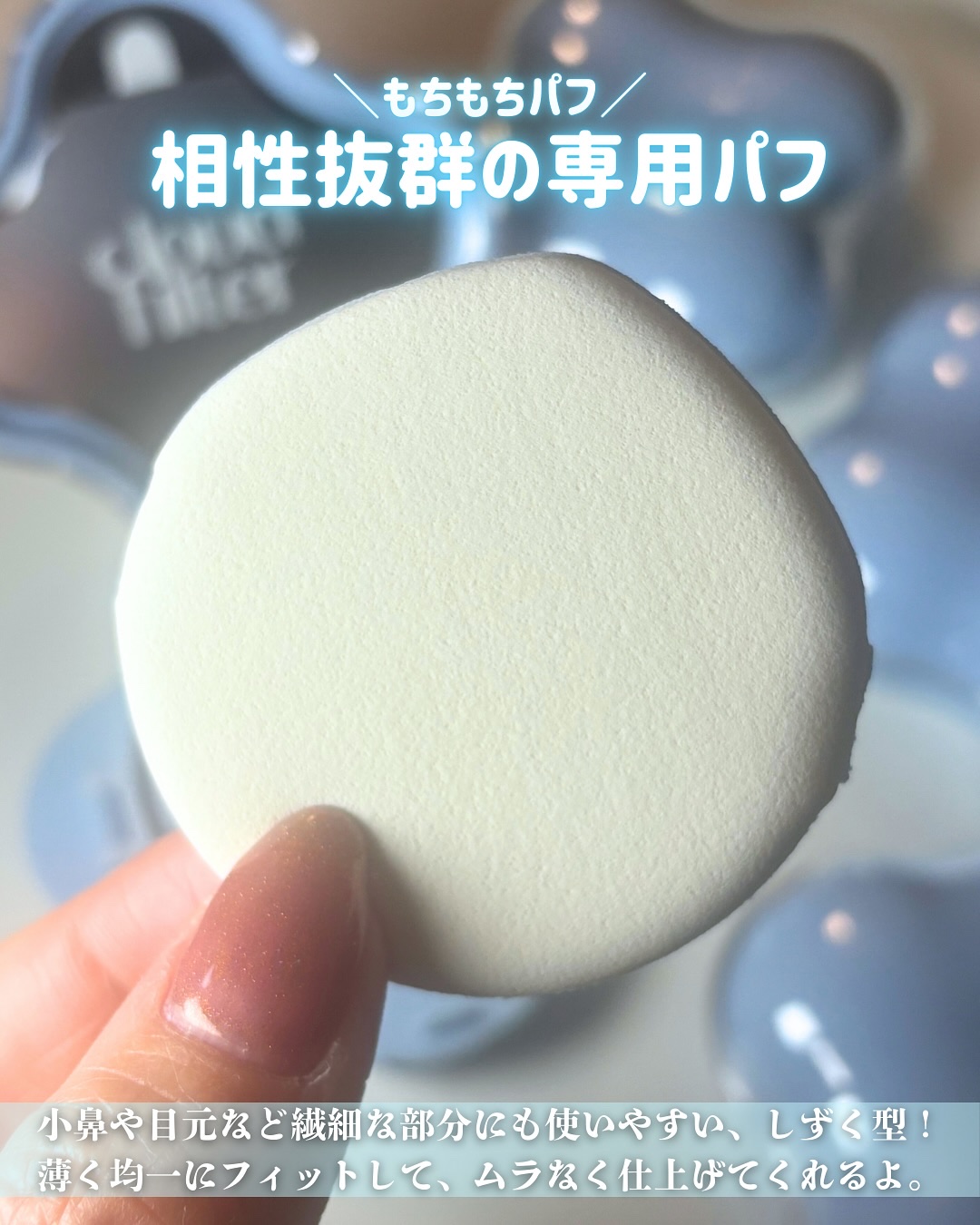 - 【ふんわり晴れごこち 映える#うぶ肌】 カラーコントロール×カバー力×セミツヤ肌を長時間キープ 1つで3役、華やかな透明感*¹のある肌に仕上げるマルチクッション <触れたくなる儚げ透明肌*¹> ブルーパウダー*²が肌のくすみや色ムラを補正。ワントーン明るい*¹透き通った肌印象に。 <ナチュラルなカバー力> 毛穴や赤みなど気になる肌悩みもふんわりカバー <まるで雲のような軽やかな付け心地> 重たさを感じさせない解放感のあるセミツヤ肌に SPF42/PA+++ <キュートなパッケージデザイン> 韓国のヘアメイクサロン「Kitts」と共同開発 アイドル級の透き通った色白肌を表現 *¹ メイクアップ効果による *² 酸化チタン