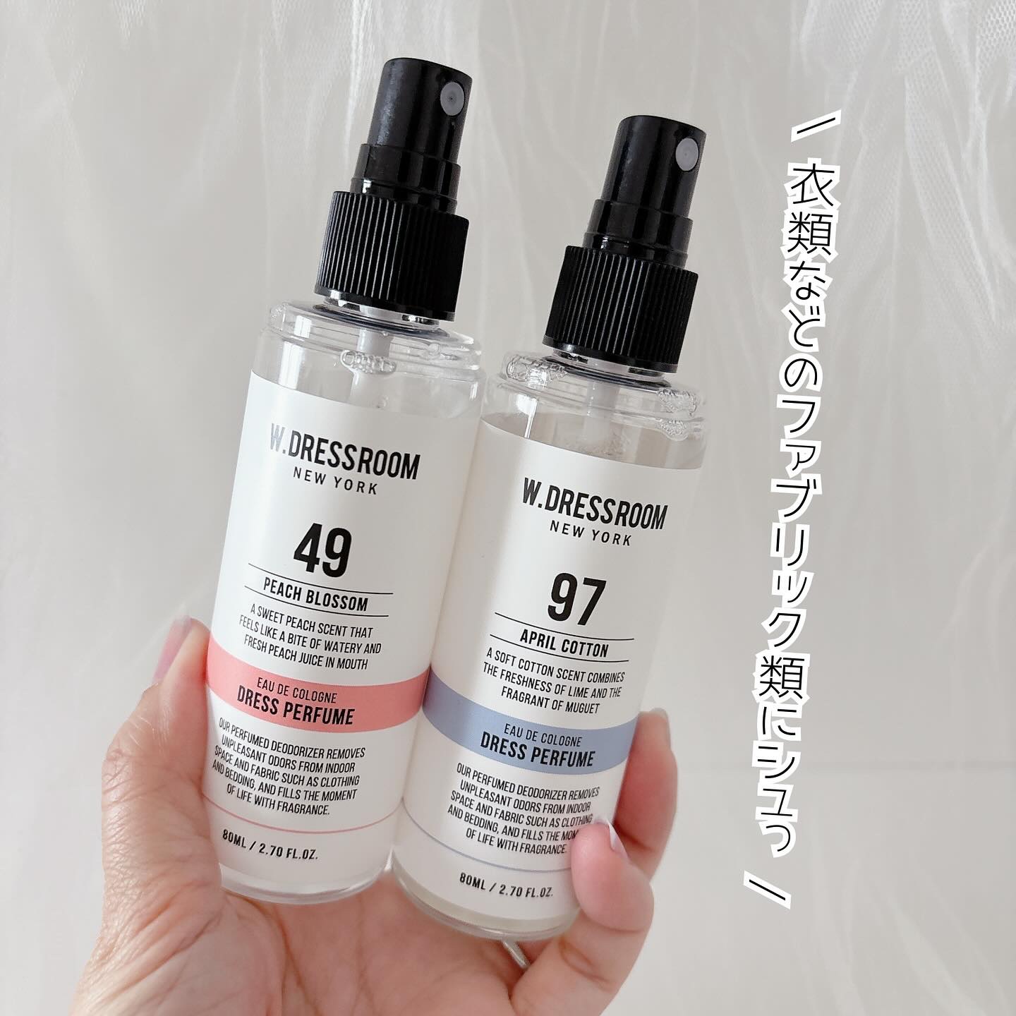 🌼*・\2月からQoo10での販売がついにスタート!1級チーフ調香師が厳選した、人気フレグランス/○W.DRESSROOM(@w.dressroom_jp)ドレスパフューム#49PeachBlossom160ml#97AprilCotton1...