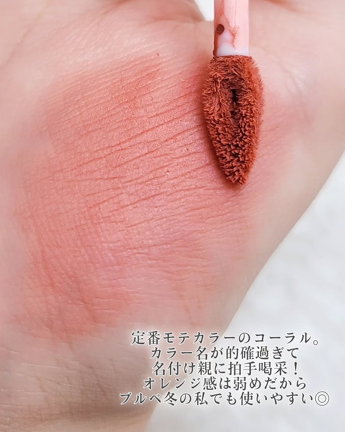 | ふんわり柔らかなつけ心地のもちもちリップ。しっとりした仕上がりなので、マット使ったことない人も試しやすいと思う◎ | 詳細を見る |