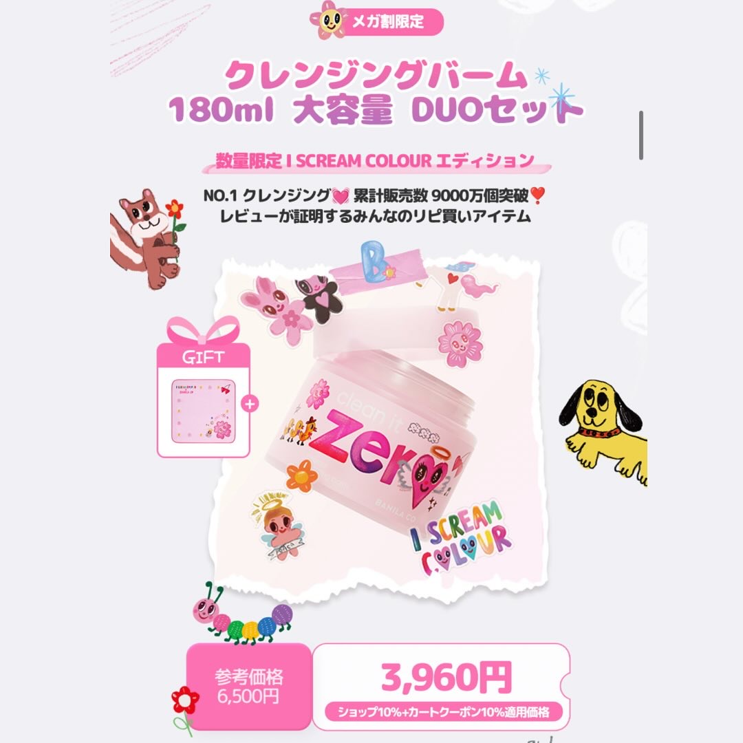 可愛くてポップな限定パッケージ 人気アーティストとコラボ!💖 マイクロキャプチャーテクノロジーにより以前より99%高くなった洗浄力🫧 体温でスッととろけるテクスチャーで肌により優しく微細なホコリからウォータープルーフまでダブル洗顔なしで徹底的にクレンジングしてくれるバーム✨