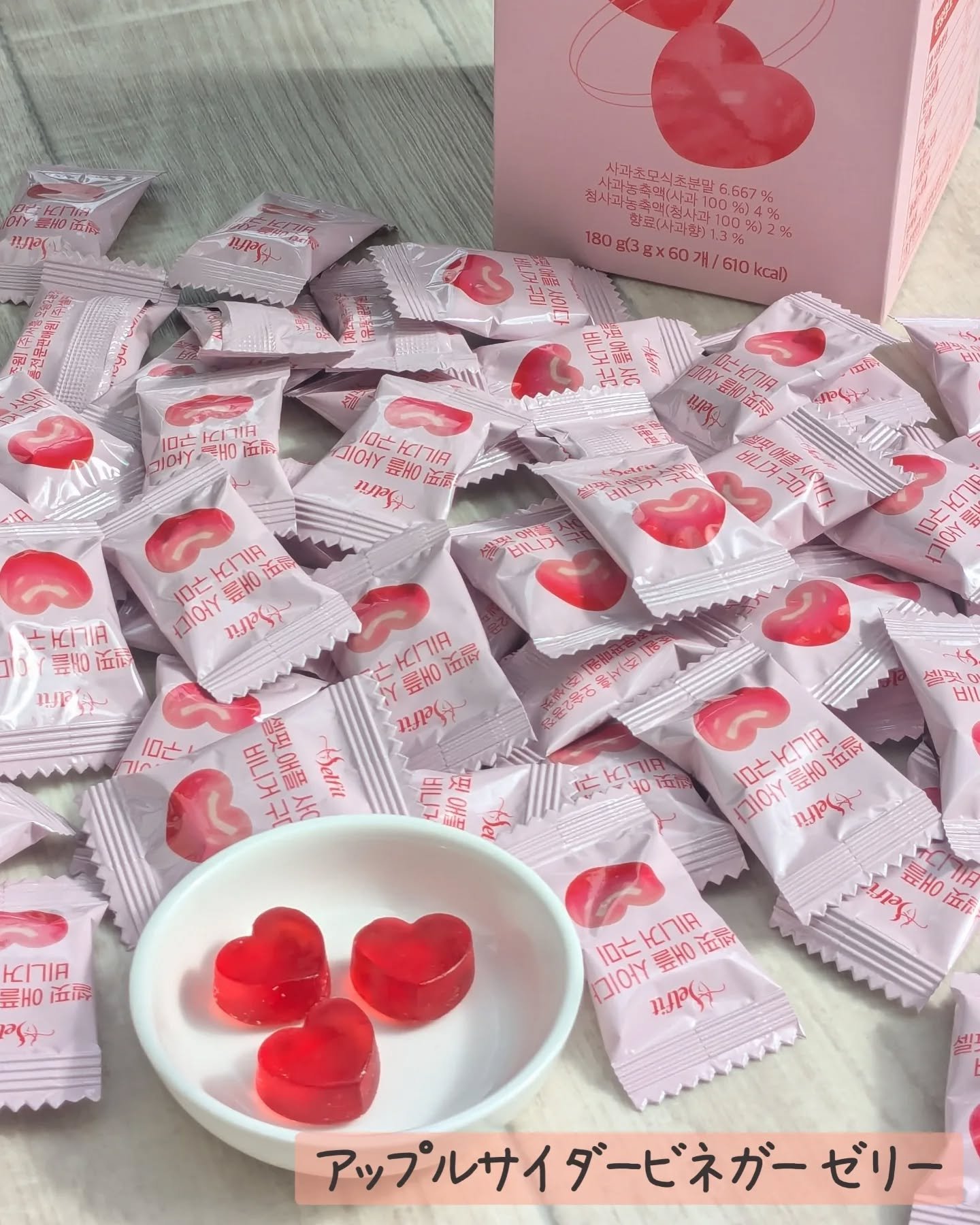 酸味が少なく、カロリーや糖分を気にせず摂取できるダイエットスナックとして美味しく食べれた!🍎✨ 2,160時間かけてじっくり発酵させた高濃度アップルサイダービネガー 🍎 個包装だから持ち歩きもしやすく何より♡型がとっても可愛い!