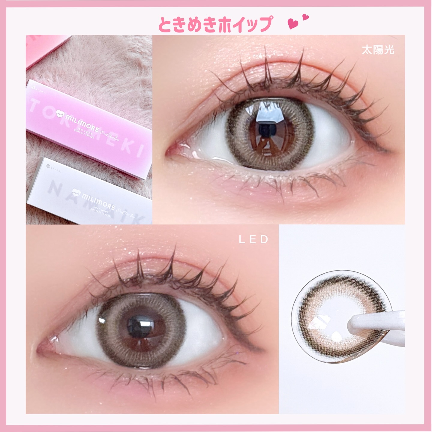 キャンマジ新色出たよ💕 馴染む立体感がヨジャドルっぽくて新色の中で1番よく使ってるカラー。 どんなメイクとも相性がいいので使いやすいです! 着色直径よりも体感大きめに感じるのも🙆🏻♀️ オレンジ感の少ないブラウンだから口紅やチーク次第で幼くも大人っぽくもなれる。 浮かない太めフチで可愛いさ溢れてます✨ レンズ単体だとめちゃくちゃピンクなのかなと思ったけど着けたら馴染みました💕 パキッとしないのでほわほわしたピンクが好きな人やラメメイクが好きな人にもおすすめ◎