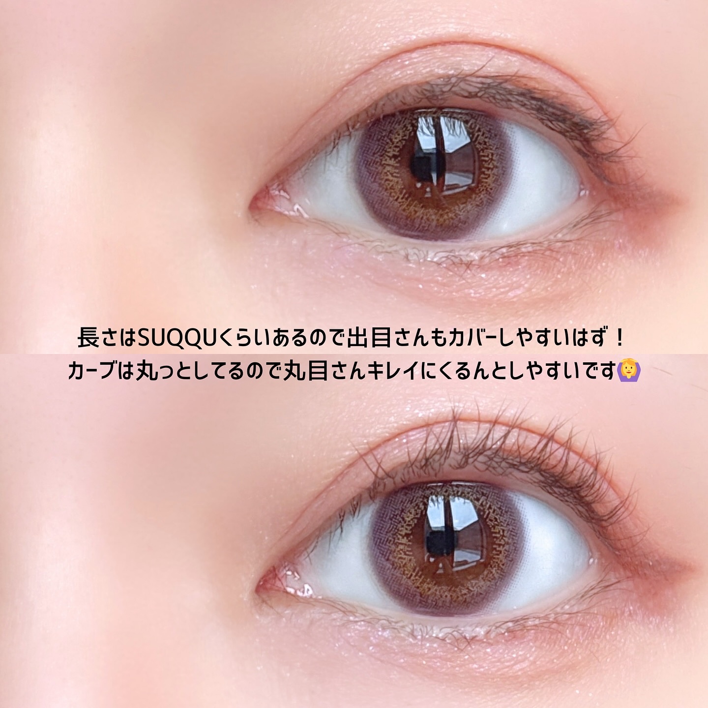 キャンマジ新色出たよ💕 馴染む立体感がヨジャドルっぽくて新色の中で1番よく使ってるカラー。 どんなメイクとも相性がいいので使いやすいです! 着色直径よりも体感大きめに感じるのも🙆🏻♀️ オレンジ感の少ないブラウンだから口紅やチーク次第で幼くも大人っぽくもなれる。 浮かない太めフチで可愛いさ溢れてます✨ レンズ単体だとめちゃくちゃピンクなのかなと思ったけど着けたら馴染みました💕 パキッとしないのでほわほわしたピンクが好きな人やラメメイクが好きな人にもおすすめ◎