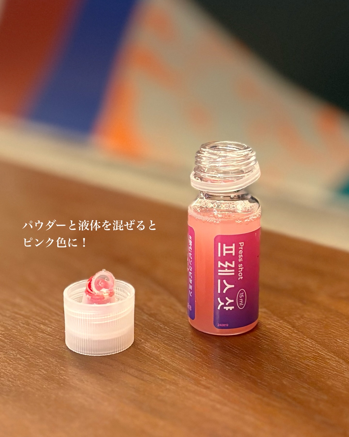 韓国美容の知識とこだわりが詰まった 飲む美容液「PRESS SHOT」。 厳選された成分配合 美容を意識した日常に嬉しい成分がぎゅっと凝縮。 1日1本、自分のタイミングで飲むだけ✨ 日々のケアにプラスできるから、続けやすく習慣にしやすい😊