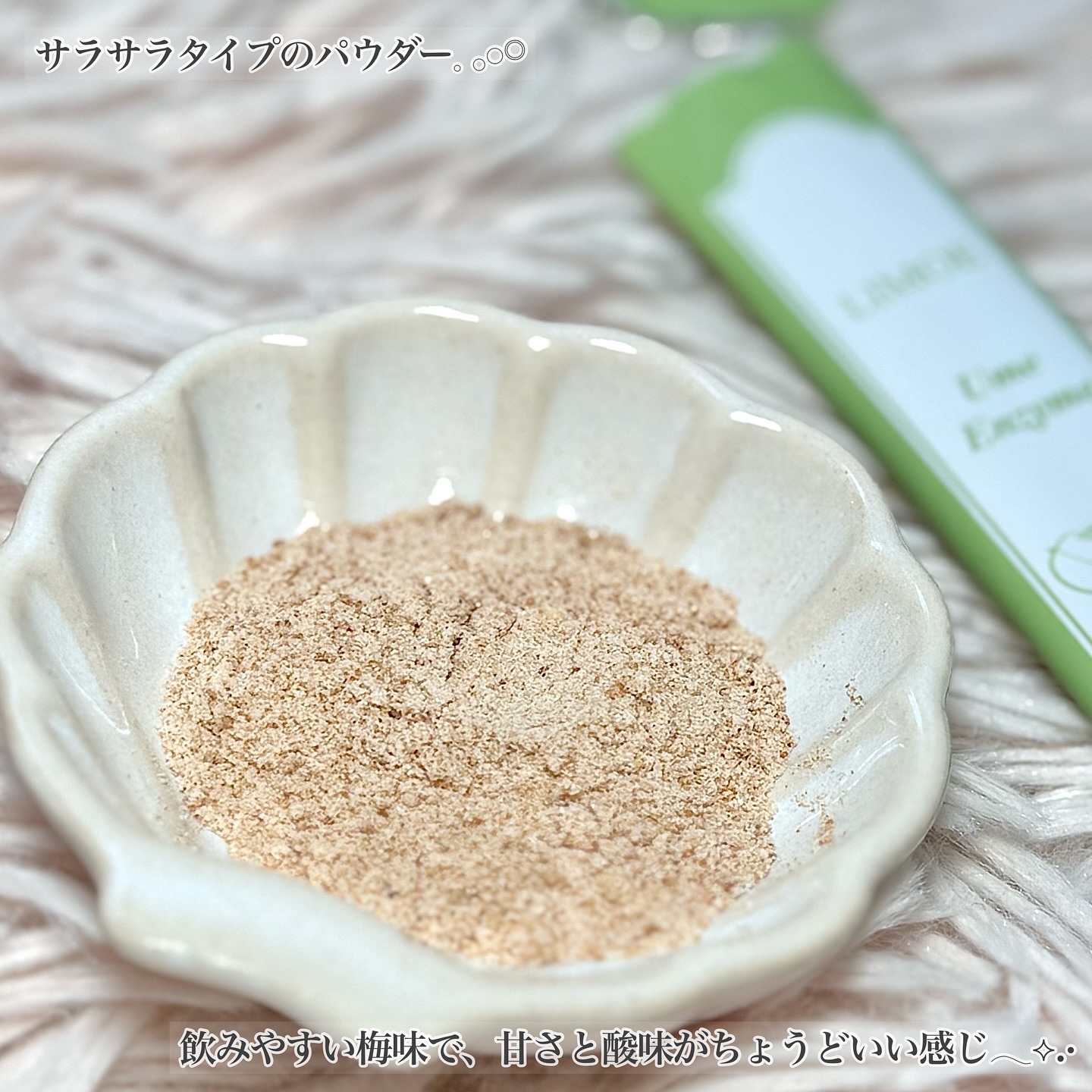 LIMOE 梅酵素です💚30包入り。 食事をスムーズに消化する消化酵素! 自然発酵された9種穀物発酵酵素粉末と麦発酵酵素が60.5%配合。 水なしでも飲みやすいサラサラパウダー。 さっぱり美味しい梅味💚