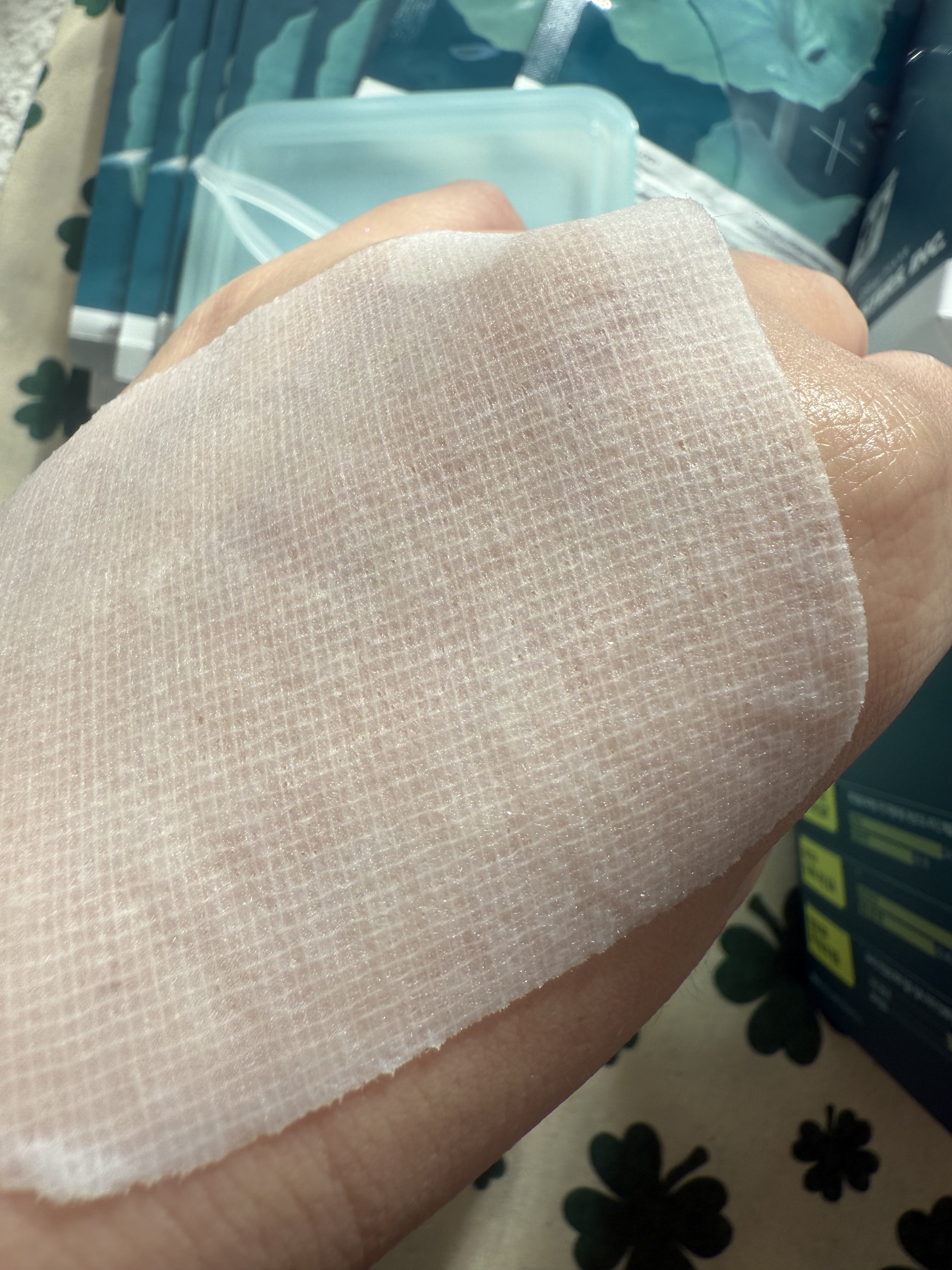 | シワも出来ずにぴたーっと密着。顔との一体感がすごい!そして液がヒタヒタなのに垂れてこない! | 詳細を見る | ||
