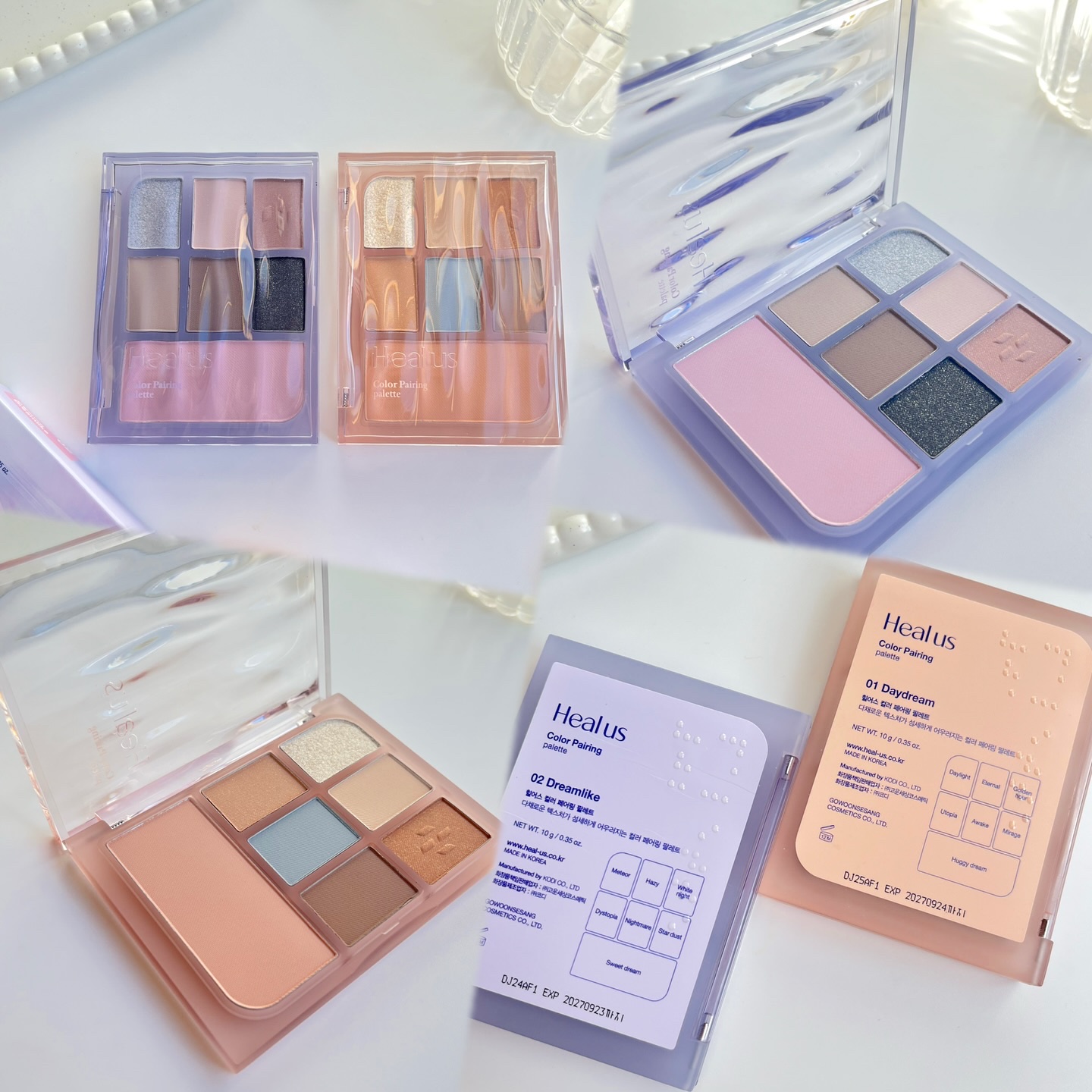 真昼の柔らかい日差しと、夜空の輝きからインスパイアされた アイ&チークパレット💘 繊細ながら自然に調和するカラーで肌タイプとわず使えるのが嬉しい🌈 マルチユースパレット → アイからチークまでこれひとつで完成! コンパクトなパレットにハイライト〜シェーディング、ポイントカラー、グリッター、チークまで含まれているので 持ち運びにもぴったり✨
