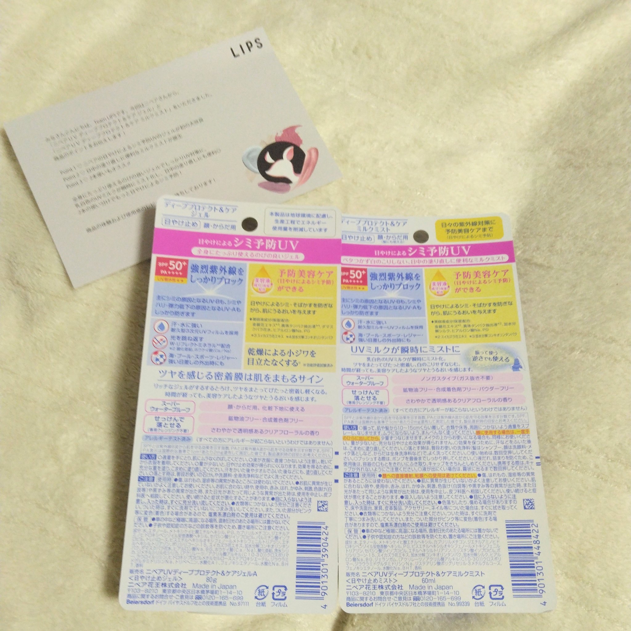 「ニベア花王」さまから商品提供をいただきました。ニベアUVディーププロテクト&ケアジェル〈日やけ止めジェル〉1,078円(税込)80gニベアUVディーププロテクト&ケアミルクミスト〈日やけ止めミスト〉1,188円(税込)60mlニベアのUVジ...
