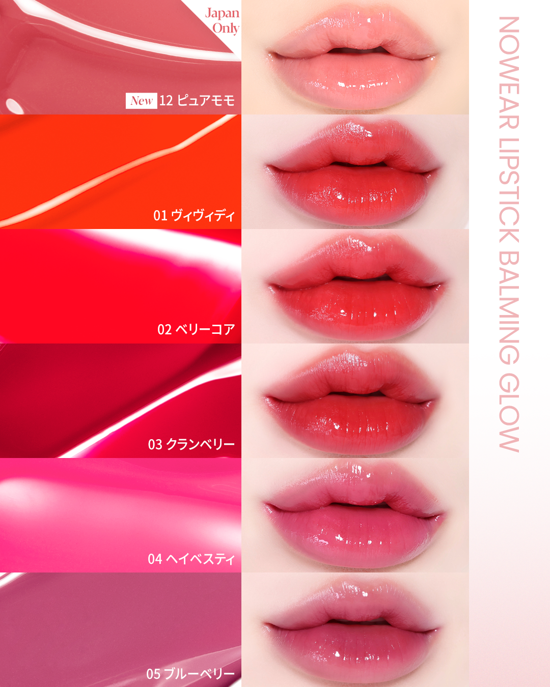 - <01 ヴィヴィディ(Vividy)【EC展開カラー】> ペンタイソステアリン酸ジペンタエリスリチル、トリ(カプリル酸/カプリン酸)グリセリル、ラウロイルグルタミン酸ジ(フィトステリル/オクチルドデシル)、オクチルドデカノール、グリセリルウンデシルジメチコン、ジフェニルジメチコン、合成ワックス、ダイマージリノール酸(フィトステリル/イソステアリル/セチル/ステアリル/ベヘニル)、トリイソステアリン酸ポリグリセリル-2、(アクリレーツ/アクリル酸ステアリル/メタクリル酸ジメチコン)コポリマー、ラウリルポリグリセリル-3ポリジメチルシロキシエチルジメチコン、(エチレン/プロピレン)コポリマー、ジメチコン、ポリヒドロキシステアリン酸、香料、レシチン、パルミチン酸エチルヘキシル、イソステアリン酸、ミリスチン酸イソプロピル、ポリリシノレイン酸ポリグリセリル-3、水酸化Al、トリエトキシカプリリルシラン、トコフェロール、赤226、黄5、赤104(1)、酸化チタン、赤201 <02 ベリーコア(Berry Core)> ペンタイソステアリン酸ジペンタエリスリチル、トリ(カプリル酸/カプリン酸)グリセリル、オクチルドデカノール、ラウロイルグルタミン酸ジ(フィトステリル/オクチルドデシル)、グリセリルウンデシルジメチコン、ジフェニルジメチコン、合成ワックス、ダイマージリノール酸(フィトステリル/イソステアリル/セチル/ステアリル/ベヘニル)、トリイソステアリン酸ポリグリセリル-2、(アクリレーツ/アクリル酸ステアリル/メタクリル酸ジメチコン)コポリマー、ラウリルポリグリセリル-3ポリジメチルシロキシエチルジメチコン、(エチレン/プロピレン)コポリマー、ジメチコン、香料、トコフェロール、赤202、赤201、黄5、酸化鉄 <03 クランベリー(Cranberry)【EC展開カラー】> ペンタイソステアリン酸ジペンタエリスリチル、オクチルドデカノール、トリ(カプリル酸/カプリン酸)グリセリル、ラウロイルグルタミン酸ジ(フィトステリル/オクチルドデシル)、グリセリルウンデシルジメチコン、ジフェニルジメチコン、合成ワックス、ダイマージリノール酸(フィトステリル/イソステアリル/セチル/ステアリル/ベヘニル)、トリイソステアリン酸ポリグリセリル-2、(アクリレーツ/アクリル酸ステアリル/メタクリル酸ジメチコン)コポリマー、ラウリルポリグリセリル-3ポリジメチルシロキシエチルジメチコン、(エチレン/プロピレン)コポリマー、ジメチコン、香料、リンゴ酸ジイソステアリル、トコフェロール、ポリヒドロキシステアリン酸、レシチン、トリエトキシカプリリルシラン、パルミチン酸エチルヘキシル、イソステアリン酸、ミリスチン酸イソプロピル、ポリリシノレイン酸ポリグリセリル-3、酸化鉄、黄5、赤202、赤230(1) <04 ヘイベスティ(Hey Bestie)【EC展開カラー】> ペンタイソステアリン酸ジペンタエリスリチル、トリ(カプリル酸/カプリン酸)グリセリル、ラウロイルグルタミン酸ジ(フィトステリル/オクチルドデシル)、オクチルドデカノール、ジフェニルジメチコン、グリセリルウンデシルジメチコン、合成ワックス、ダイマージリノール酸(フィトステリル/イソステアリル/セチル/ステアリル/ベヘニル)、トリイソステアリン酸ポリグリセリル-2、ラウリルポリグリセリル-3ポリジメチルシロキシエチルジメチコン、(アクリレーツ/アクリル酸ステアリル/メタクリル酸ジメチコン)コポリマー、ポリヒドロキシステアリン酸、(エチレン/プロピレン)コポリマー、ジメチコン、レシチン、香料、パルミチン酸エチルヘキシル、イソステアリン酸、ミリスチン酸イソプロピル、ポリリシノレイン酸ポリグリセリル-3、水酸化Al、トリエトキシカプリリルシラン、トコフェロール、酸化チタン、赤202、黄5、赤104(1)、酸化鉄、青1 <05 ブルーベリー(Blueberry)> ペンタイソステアリン酸ジペンタエリスリチル、トリ(カプリル酸/カプリン酸)グリセリル、ラウロイルグルタミン酸ジ(フィトステリル/オクチルドデシル)、オクチルドデカノール、グリセリルウンデシルジメチコン、ジフェニルジメチコン、合成ワックス、ダイマージリノール酸(フィトステリル/イソステアリル/セチル/ステアリル/ベヘニル)、トリイソステアリン酸ポリグリセリル-2、ラウリルポリグリセリル-3ポリジメチルシロキシエチルジメチコン、(アクリレーツ/アクリル酸ステアリル/メタクリル酸ジメチコン)コポリマー、(エチレン/プロピレン)コポリマー、ジメチコン、香料、水酸化Al、トリエトキシカプリリルシラン、トコフェロール、酸化チタン、酸化鉄、赤202、青1、赤104(1) <06 ニューローズ(New Rose)> ペンタイソステアリン酸ジペンタエリスリチル、トリ(カプリル酸/カプリン酸)グリセリル、ラウロイルグルタミン酸ジ(フィトステリル/オクチルドデシル)、オクチルドデカノール、ジフェニルジメチコン、グリセリルウンデシルジメチコン、合成ワックス、ダイマージリノール酸(フィトステリル/イソステアリル/セチル/ステアリル/ベヘニル)、トリイソステアリン酸ポリグリ