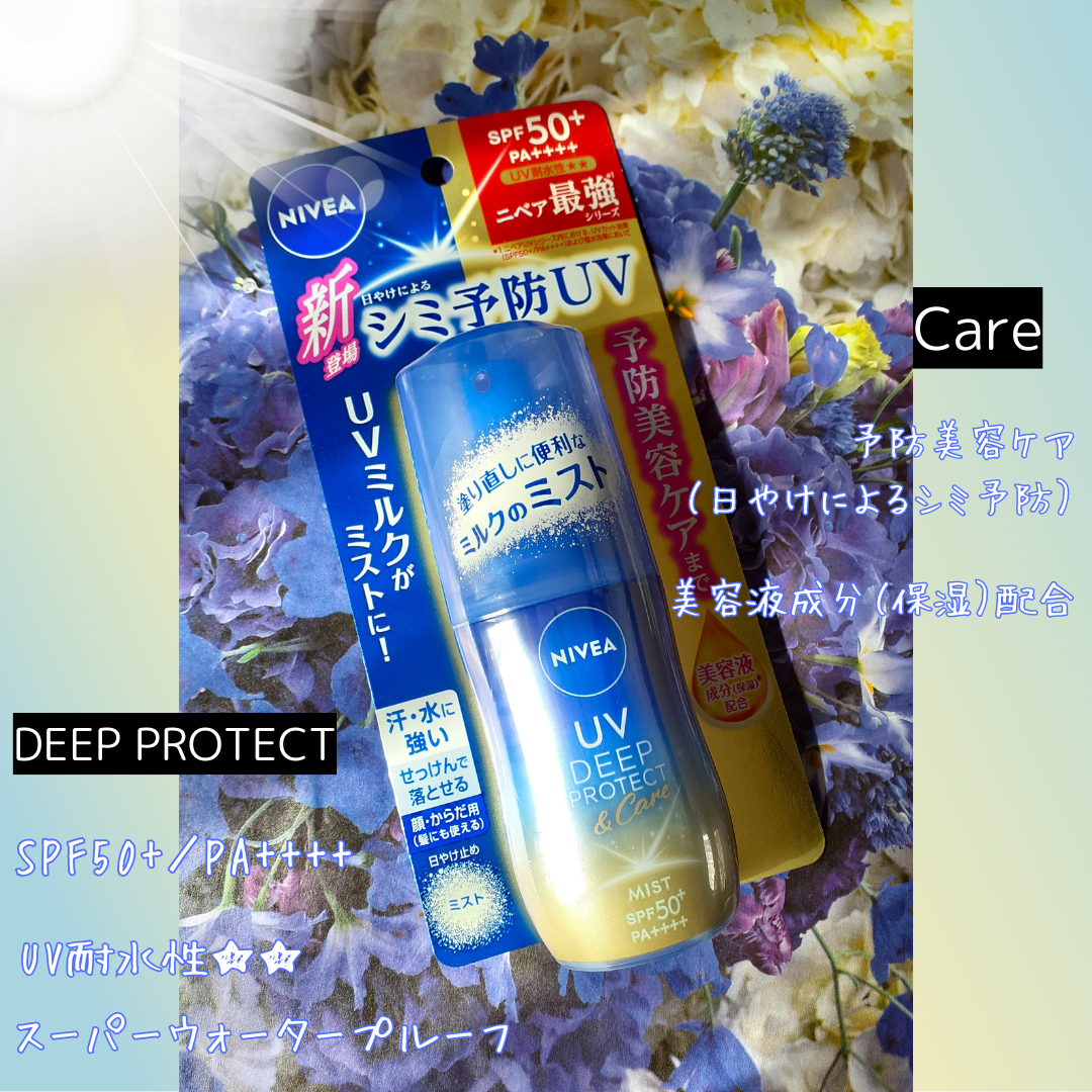 \新日やけによるシミ予防*1UV/『ニベアUVディーププロテクト&ケアミルクミスト』*1日やけによるシミ・そばかすを防ぐニベア花王からいただきましたベタつかず白のこりしない、日中の塗り直しに便利なミルクミスト★DEEPPROTECT&Care...