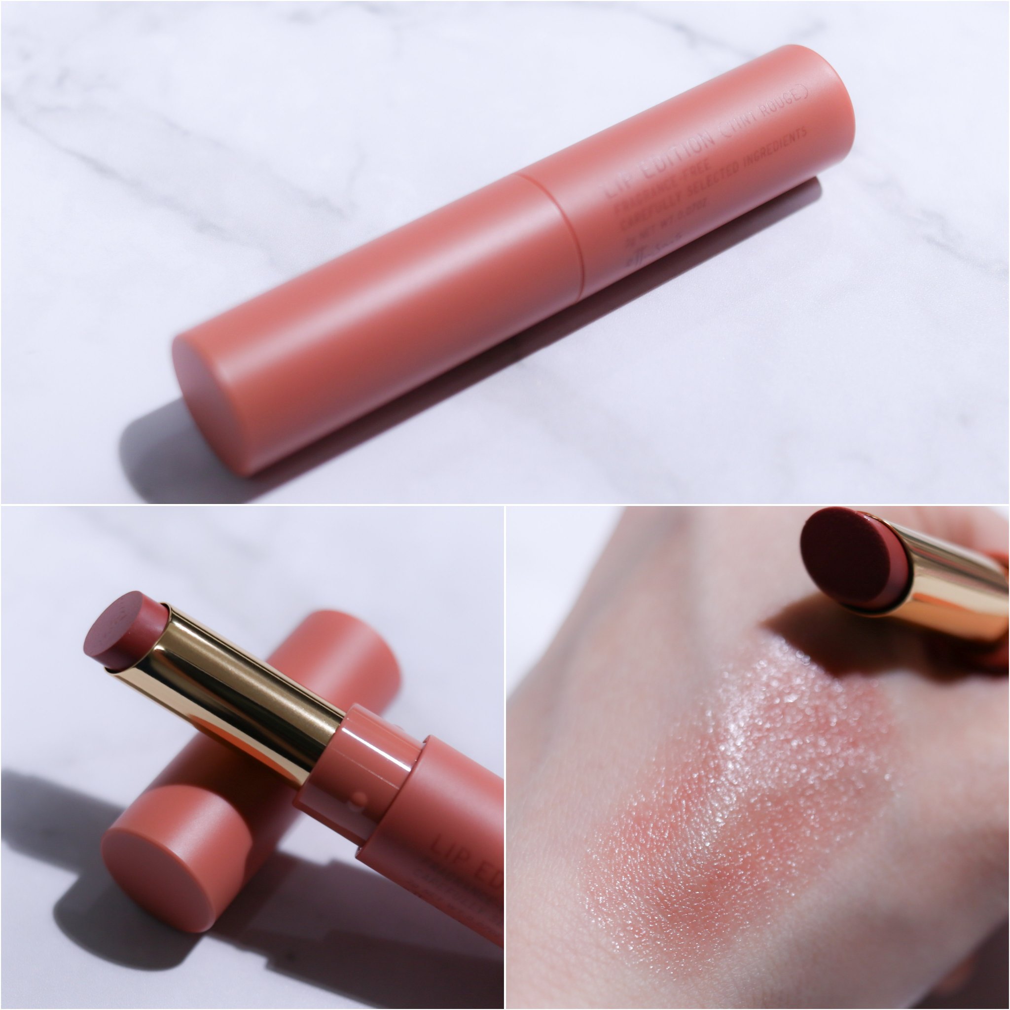 肌の擦れた部分でも分かるように、滑らかだけど少しねっとりキャラメルのような滑り方をする感じもします。 色つきのバーム、という感じで拭き取れば取れます✨ お値段も1500円前後と、プレゼントしてもよろこばれそうですね✨