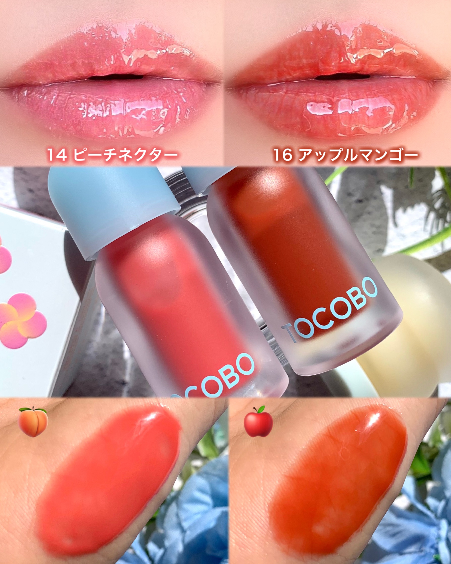 トコボジューシーベリープランピングリップオイル🌟 日本限定カラー✨ 14 ピーチネクター 16 アップルマンゴー リップマスクで、ふっくら♡ リップオイルで、ぷるツヤ♡ 2つを組み合わせてもよかったよ😊 素敵なお品ありがとうございました❣️