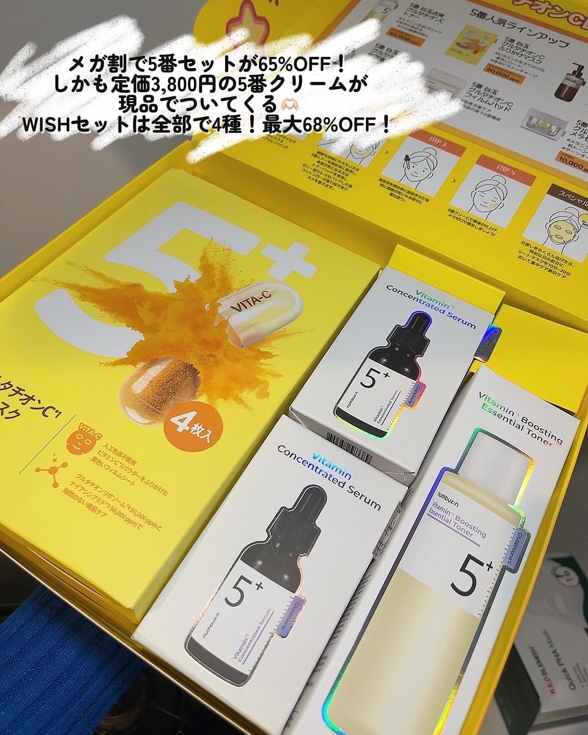 お得なメガ割で美肌WISHセット4種が実質最大68%OFF!5番セット購入時、定価3,800円の5番クリーム現品ギフトがもらえちゃう! 激アツナンバーズイン‼️ 貴方はどれにする?全部❓ ★ ナンバーズインのモデルにNCT WISHが抜擢!メガ割で美肌WISHセット購入時、NCT WISHのポストカード6種と直筆お守り6種が数量限定で贈呈されるんだって!