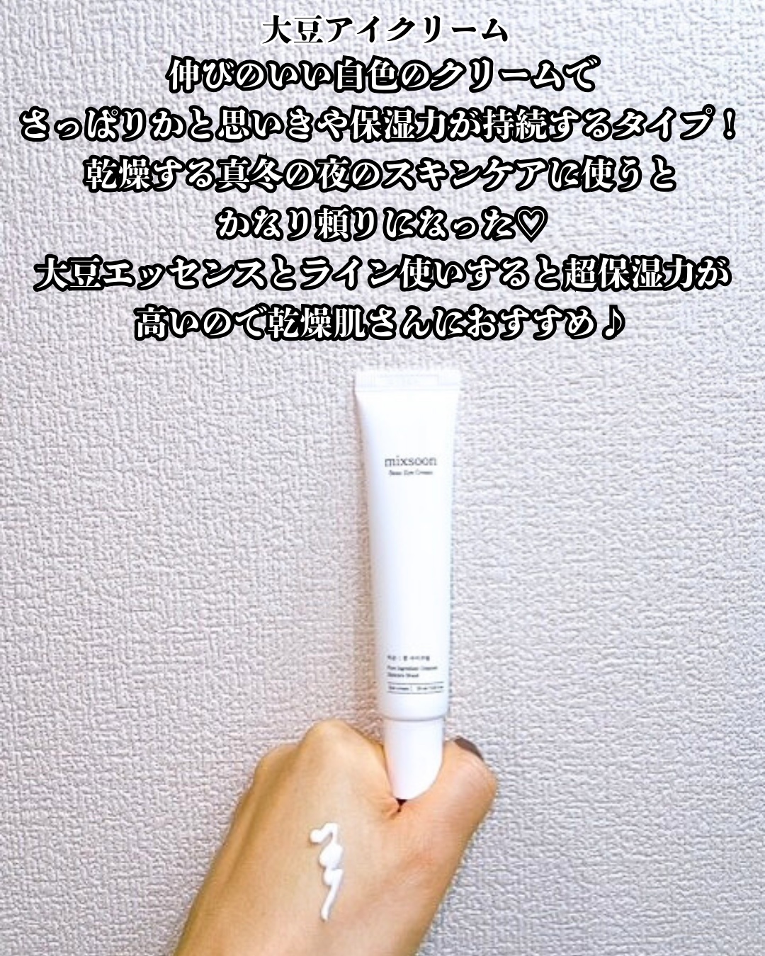 肌に不要な成分はできるだけ削除し、必須成分だけを入れた原料主義ミニマルビューティー ネバネバなテクスチャーでなんとなくベタつくかなと思ってたけど、そんなことはなく肌に馴染むとサラッと、でもしっとり感のある肌に✨ 大豆の成分で目のクマやや小ジワまでモチモチ感で保湿してくれるアイクリーム