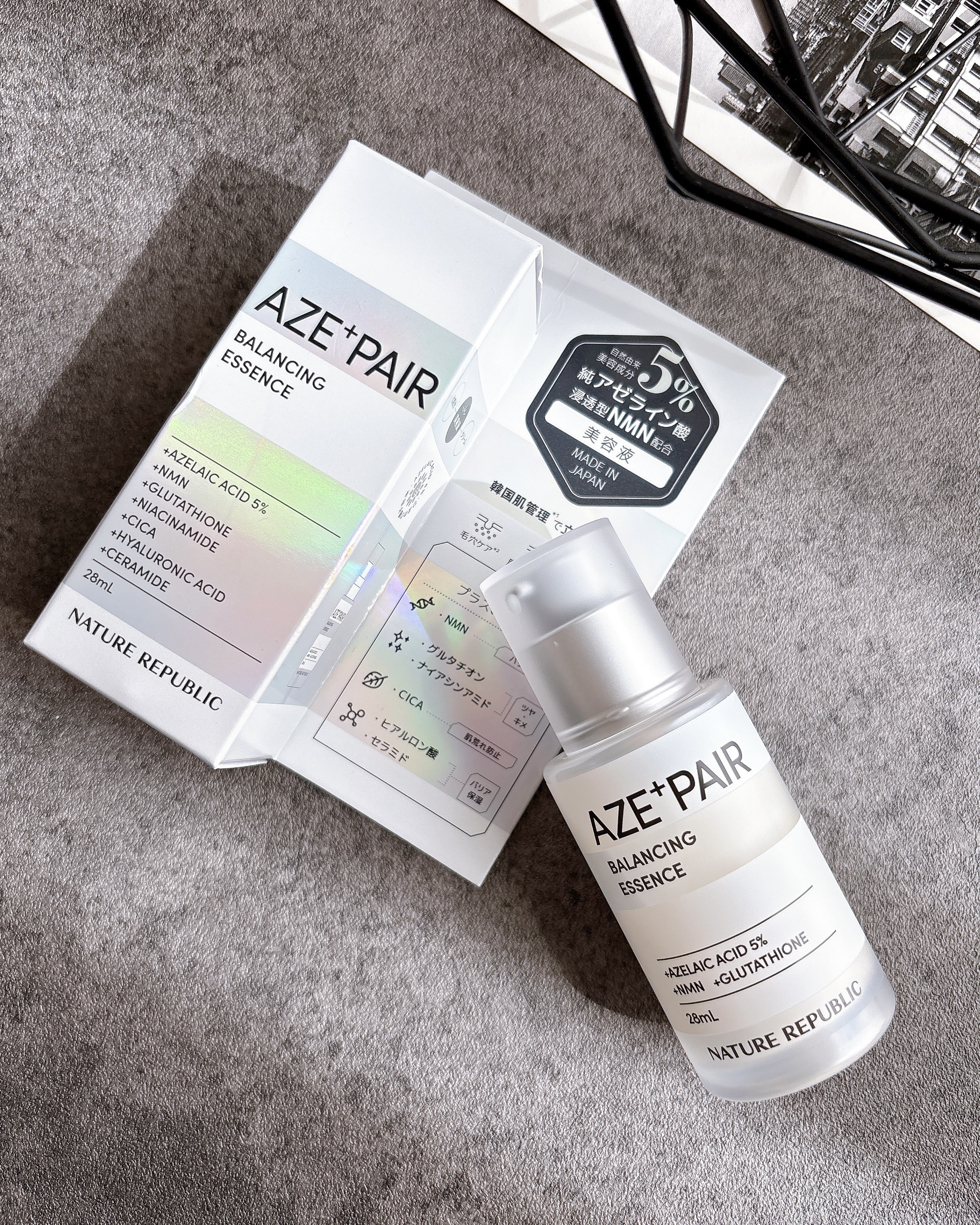 - 【韓国の肌管理*から発想を得たアゼペア】 高濃度*1の純アゼライン酸*2と厳選した美容成分が皮脂トラブル*3や肌荒れをしっかり防ぎながらも毛穴*4をケアして透明感*5のある肌へと整えます。 美容液には純アゼライン酸*2を5%配合しており、ミルクタイプのエッセンスが濃密なうるおいを素肌に届けます。普段のスキンケアにプラスするだけで皮脂トラブル*3をケアし、肌荒れを防ぎます。 先行発売:2024年8月31日よりロフト、PLAZA・MINiPLA、公式オンラインストアにて先行発売。 *うるおいケアのこと*1当社比*2保湿成分*3過剰な皮脂の分泌による肌荒れのこと*4乾燥によって開いた毛穴のこと*5うるおいを与えることによる肌印象のこと