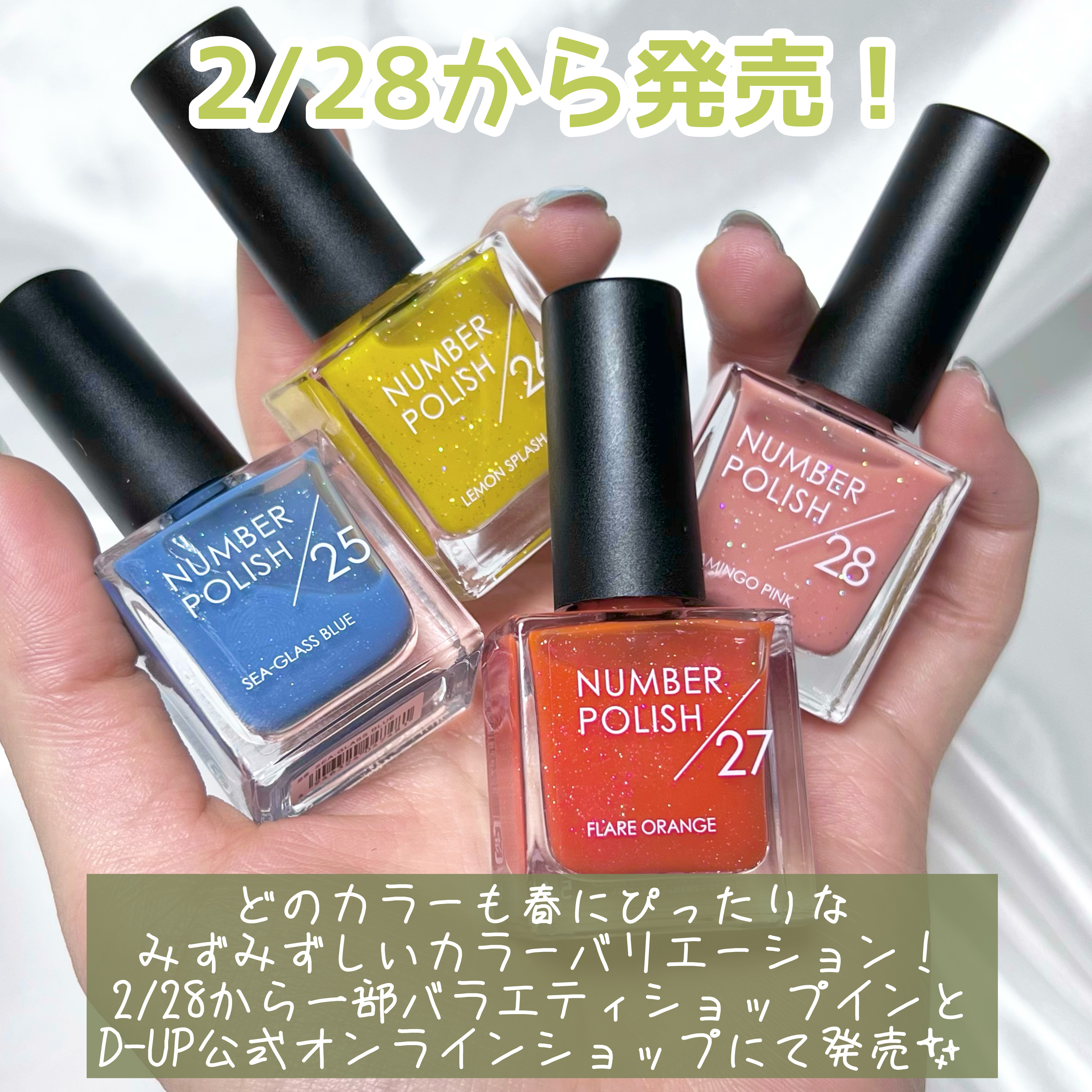 - 「毎日忙しいからネイルは気軽に楽しみたい。」「ツヤも、発色も、モチの良さも、全部叶えてほしい。」 ナンバーポリッシュは、ベースコートやトップコートを使わずに、これ1本だけでツヤのある美しいネイルカラーを楽しむことができる、よくばりなオールインワンネイルポリッシュです。