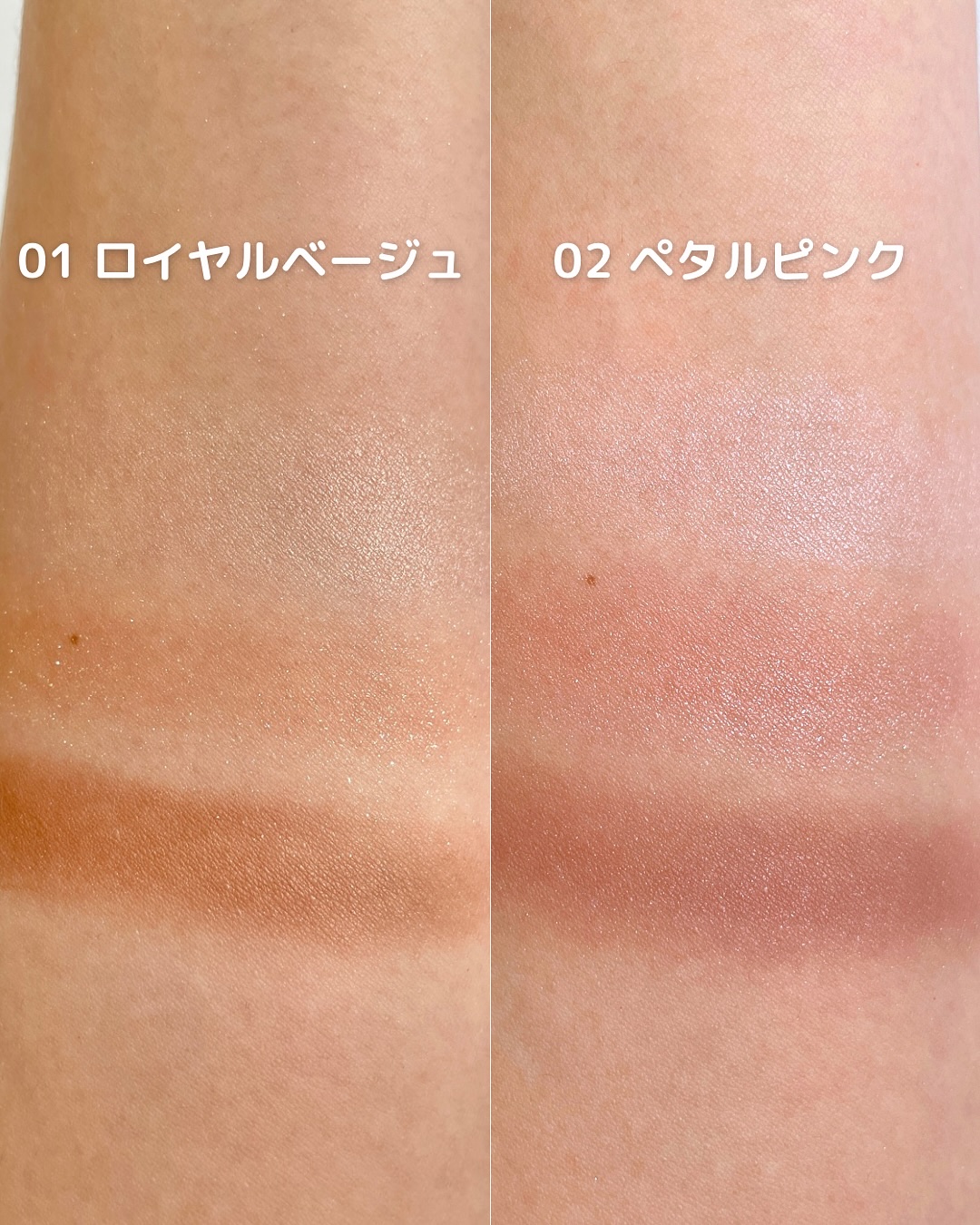 - <01 ロイヤルベージュ> タルク、マイカ、合成フルオロフロゴパイト、水添ポリイソブテン、ポリメタクリル酸メチル、ジメチコン、酸化チタン、シクロペンタシロキサン、酸化鉄、ジフェニルシロキシフェニルトリメチコン、ポリメチルシルセスキオキサン、ヘキサ(ヒドロキシステアリン酸/ステアリン酸/ロジン酸)ジペンタエリスリチル、ホウケイ酸(Ca/Al)、リンゴ酸ジイソステアリル、テトライソステアリン酸ペンタエリスリチル、ミリスチン酸イソプロピル、ラウリン酸亜鉛、セスキイソステアリン酸ソルビタン、シア脂、ホホバ種子油、スクワラン、ヒアルロン酸Na、セラミドNP、テトラ(ヒドロキシステアリン酸/イソステアリン酸)ジペンタエリスリチル、ラウロイルリシン、ジメチコンクロスポリマー、ワセリン、トリエトキシカプリリルシラン、エチルヘキシルグリセリン、(ジメチコン/ビニルジメチコン)クロスポリマー、カプリロイルグリシン、ハイドロゲンジメチコン、ケイ酸(アンモニウム/銀/亜鉛/Al)、グリチルレチン酸ステアリル、硫酸Ba、ブチルカルバミン酸ヨウ化プロピニル、トコフェロール、赤226 <02 ペタルピンク> タルク、マイカ、合成フルオロフロゴパイト、酸化チタン、水添ポリイソブテン、ジメチコン、シクロペンタシロキサン、ポリメタクリル酸メチル、ジフェニルシロキシフェニルトリメチコン、ポリメチルシルセスキオキサン、リンゴ酸ジイソステアリル、ヘキサ(ヒドロキシステアリン酸/ステアリン酸/ロジン酸)ジペンタエリスリチル、酸化鉄、グンジョウ、テトライソステアリン酸ペンタエリスリチル、ミリスチン酸イソプロピル、ラウリン酸亜鉛、セスキイソステアリン酸ソルビタン、シア脂、ホホバ種子油、スクワラン、ヒアルロン酸Na、セラミドNP、テトラ(ヒドロキシステアリン酸/イソステアリン酸)ジペンタエリスリチル、ラウロイルリシン、ジメチコンクロスポリマー、ワセリン、トリエトキシカプリリルシラン、エチルヘキシルグリセリン、(ジメチコン/ビニルジメチコン)クロスポリマー、シリカ、カプリロイルグリシン、ハイドロゲンジメチコン、ケイ酸(アンモニウム/銀/亜鉛/Al)、グリチルレチン酸ステアリル、硫酸Ba、ブチルカルバミン酸ヨウ化プロピニル、トコフェロール、赤202、赤226