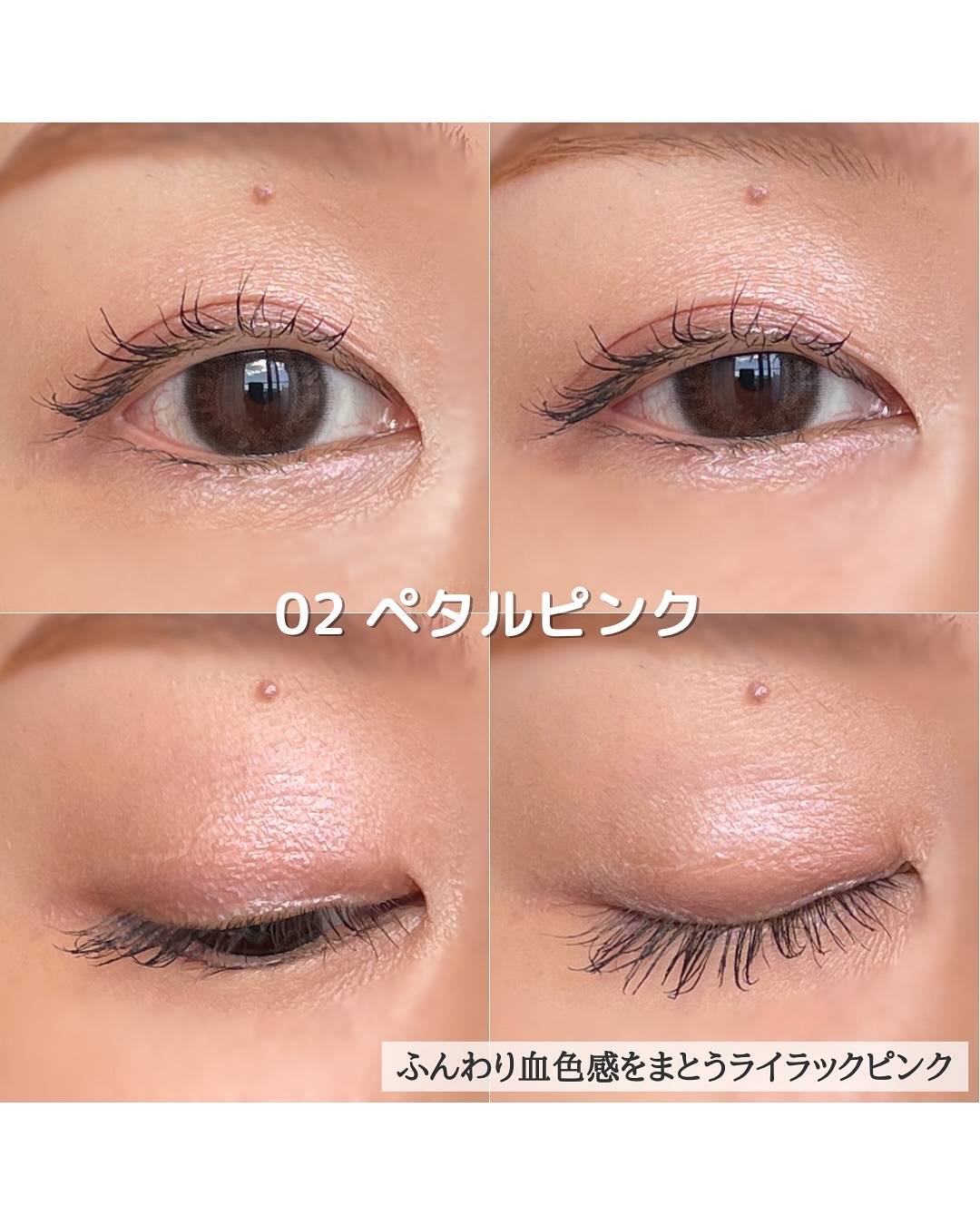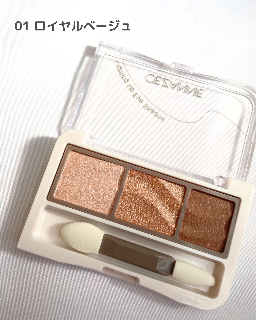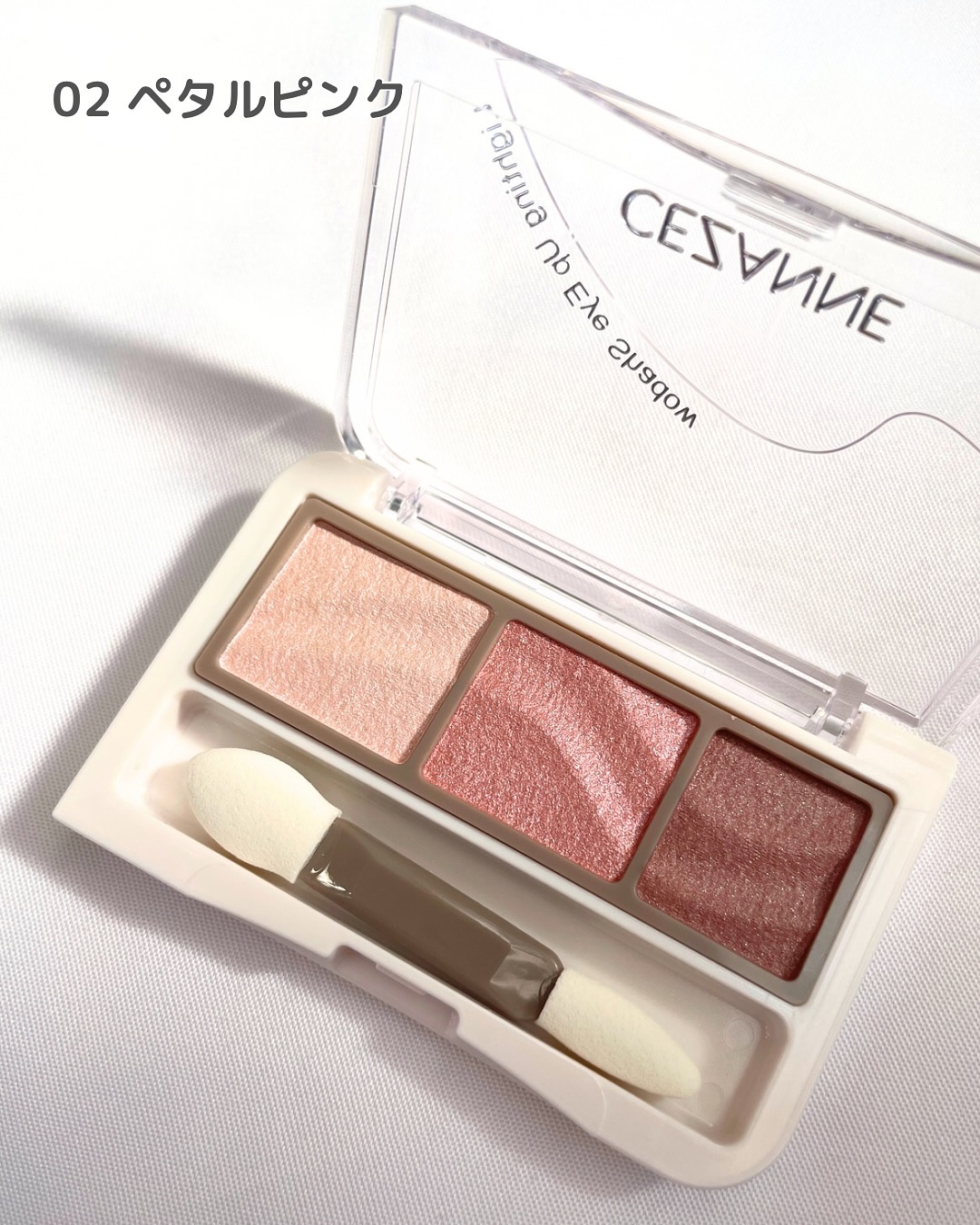 - 簡単に繊細グラデが作れる透けうる3色アイシャドウ。 使い方に迷わない!3色を重ねるだけで作りこんだような繊細グラデーションが完成。うるっと透け感×高発色で自然にくっきりとした目元に。 光を散乱させてくすみを払うソフトフォーカス効果パウダーを高配合。くすみにくく透き通るような明るい仕上がり。 しっとりとしたオイルコーティング処方で、ピタッと密着してヨレにくい。 ダブルエンドチップ付き。 01 ロイヤルベージュ:ベーシックに使いやすいブラウンベージュ。 02 ペタルピンク:ふんわり血色感をまとうライラックピンク。