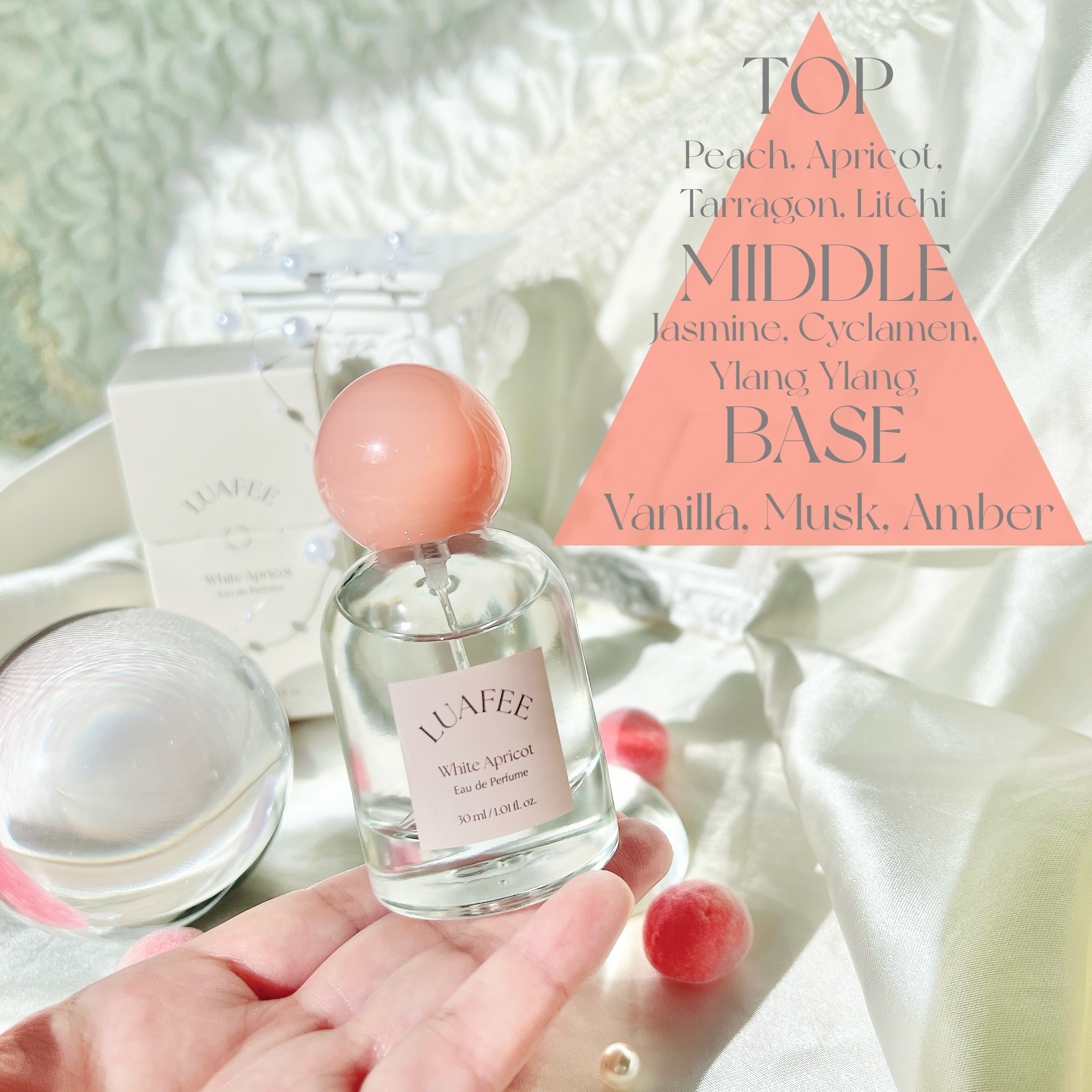 - 私だけのひととき、私を愛するための香り <香りの特徴> *ノート TOP Peach, Apricot, Tarragon, Litchi MIDDLE Jasmine, Cyclamen, Ylang Ylang LAST Vanila, Musk, Amber