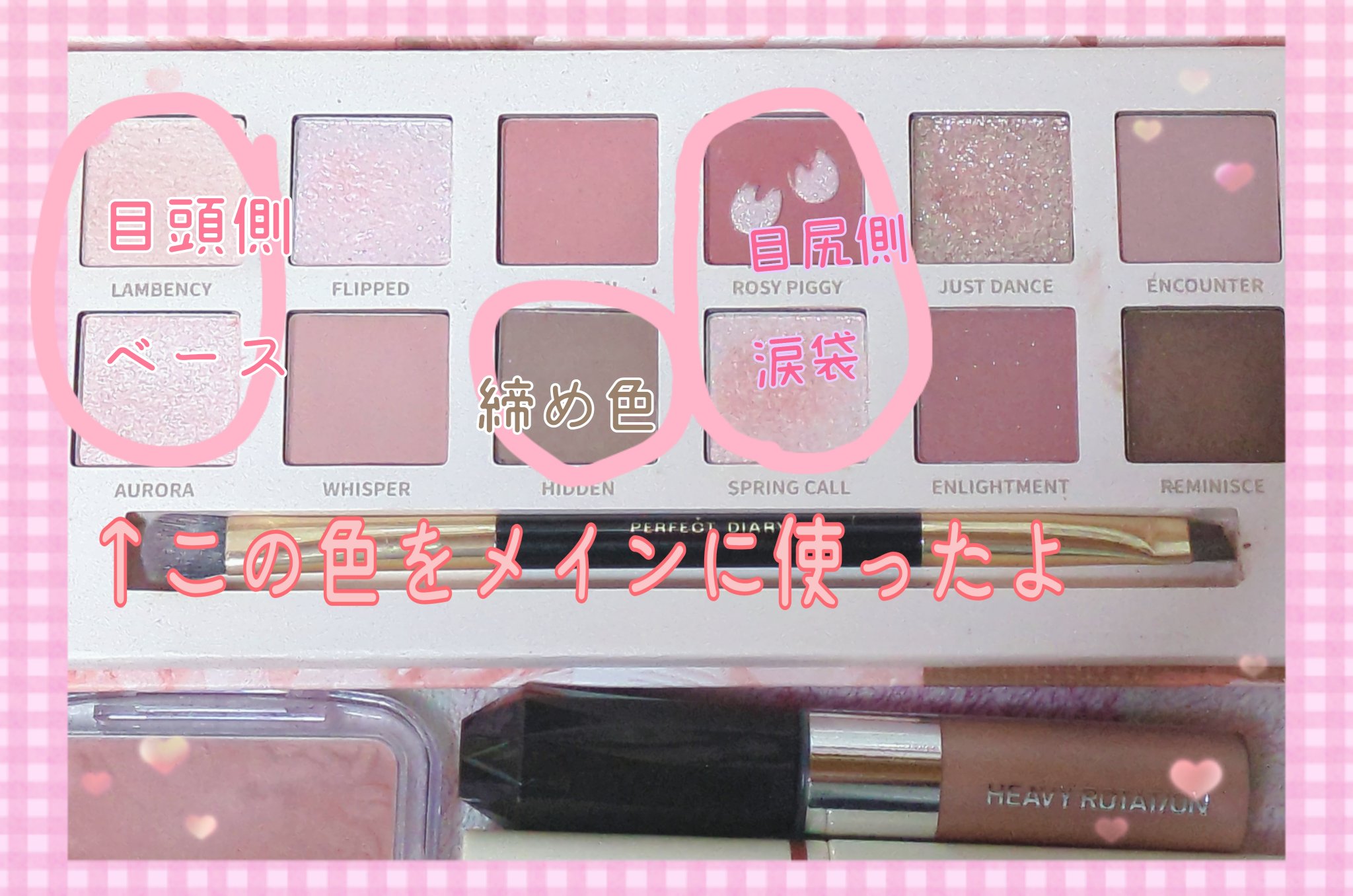 自分への誕プレに特別に高価なアイシャドウパレットゲットしたのでレビューします✌ 蓋の裏に大きな鏡が付いて実用性バッチリ! 赤系の色も強すぎず馴染みやすい色 長めで持ちやすいダブルエンドブラシ付き 一番左下のAURORAや右から3番目下のSPRING CALLも可愛い💖 うさぎちゃんも可愛いかったですが赤系の色が強そうだったのと他のイエベ春向きとされてあるカラー(鯉や鶴デザインのもの)はラメの色が自分的に使いこなせるか気になったのとやっぱりブタちゃん好きなのでこちらにしました! 早速今日のメイクに使ってみました!アイブロウの他にもシェーディングやハイライトにも使えて便利!💕