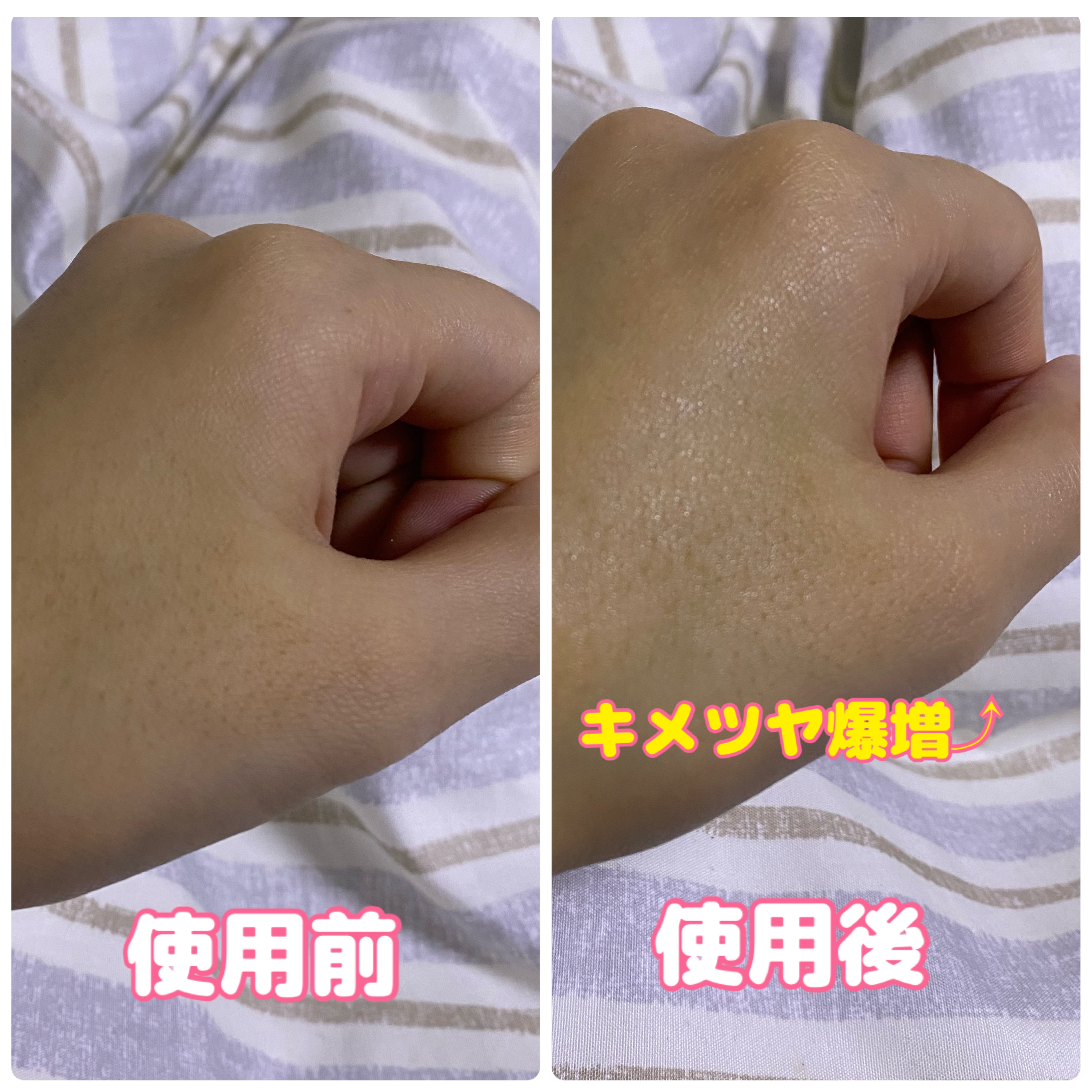 | 最初はさらっとしてるけど馴染ませると肌が手に吸い付くようになり、保湿力抜群! | 詳細を見る | ||
