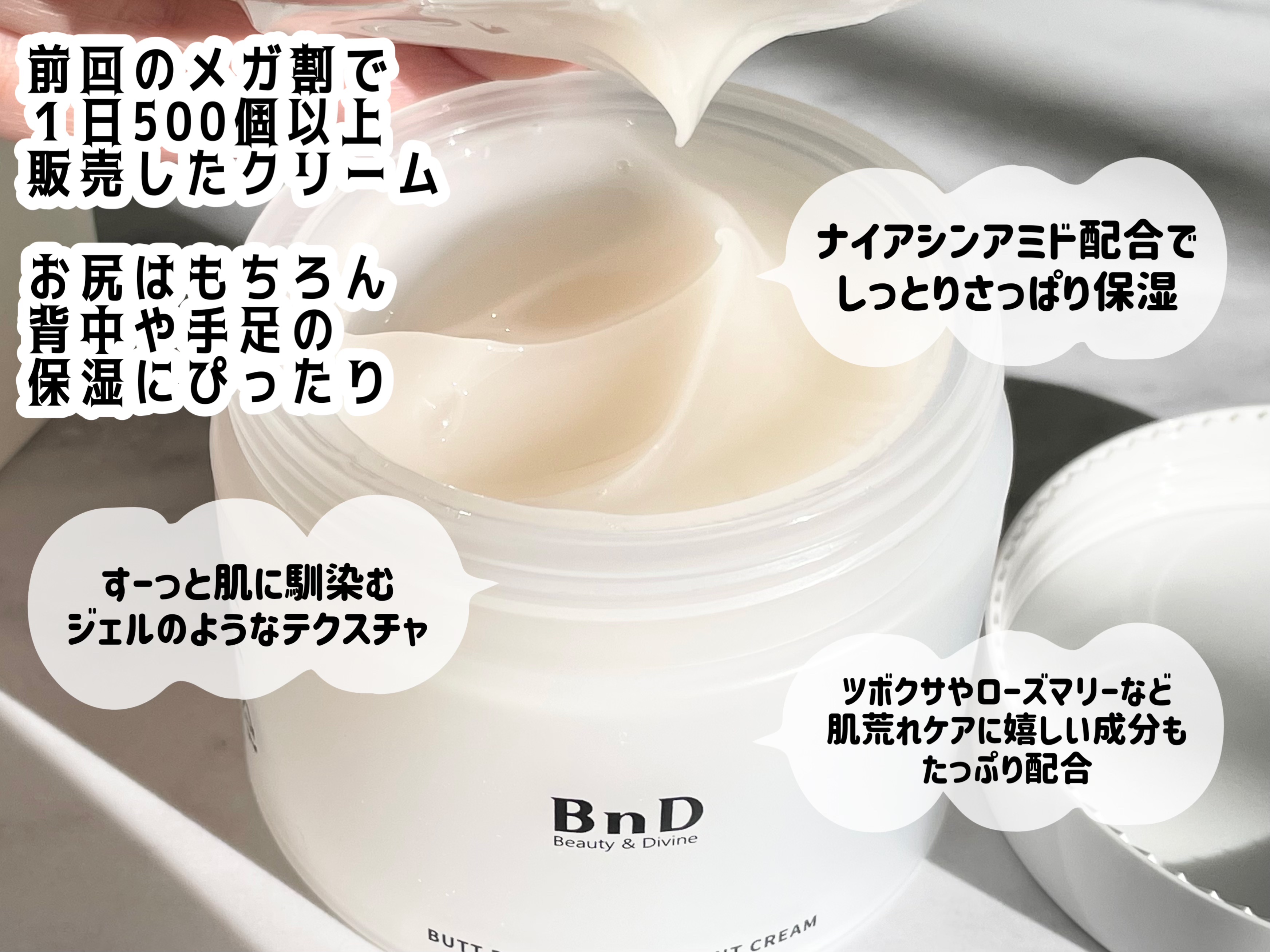 BnDButtPremiumTreatmentCreamぷるぷるお尻クリーム100g@bndofficial.jp様からぷるぷるお尻クリームをいただきました😻ありがとうございます。前回のメガ割でも1日に500個以上販売されたんだって!すごーい...