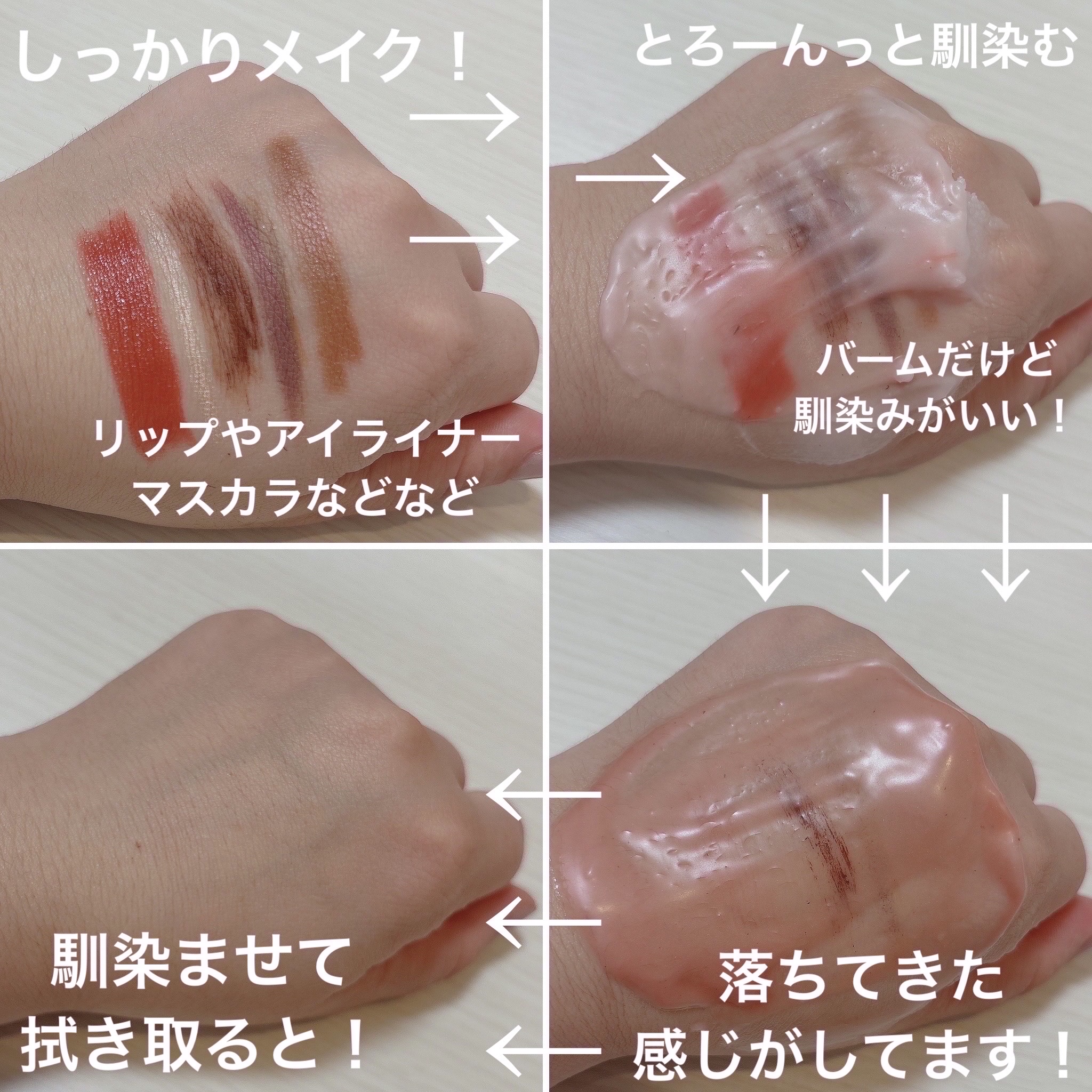 バームが取ってみるとじんわりととろけてきて、なめらかなテクスチャーに!馴染ませやすくて使いやすいです。