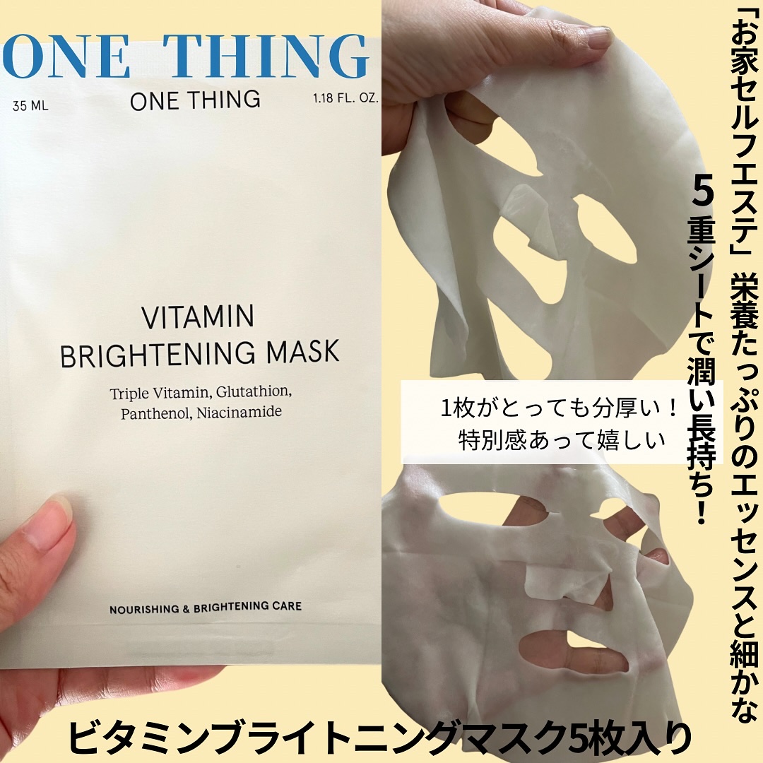 ナイアシンアミド5%配合。テクスチャはさらっとした液体でベタつかず、朝晩問わずに美白ケアができます✨ 水分たっぷりのパック。シートの素材が厚みがあって柔らかくて、とにかく肌触りがすごくいい!気持ちいい🤤 なんでも薄いシートが5重になっているらしいです。栄養たっぷりのエッセンスでお家エステ気分♪