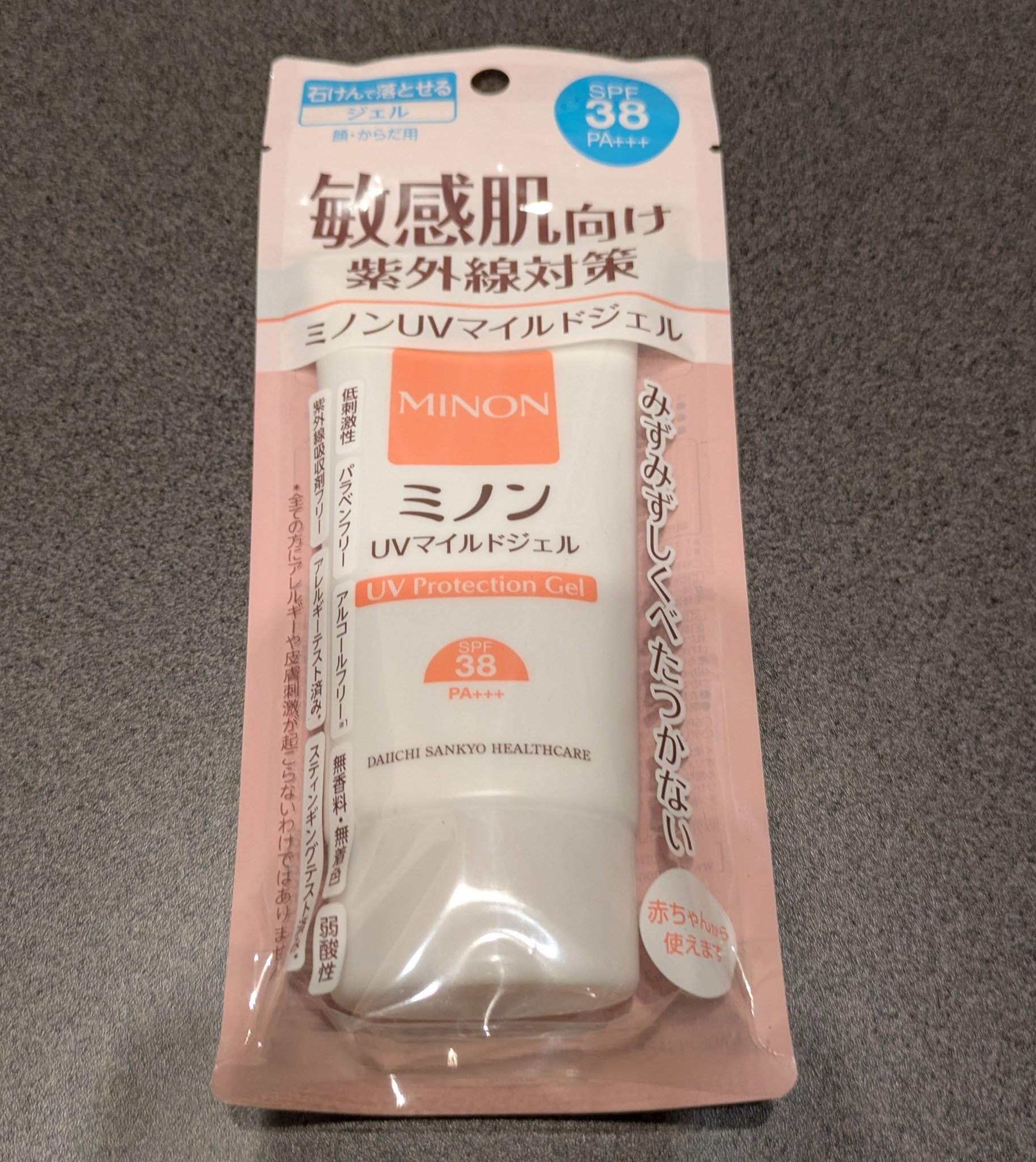 紫外線を防ぐ効果が期待できるというミノンさまの日焼け止めで、敏感肌さん向けの設計。 やわらかくて伸びのよいつけ心地。さらにベタベタしにくいのがお気に入り。 肌おもい設計の日焼け止めはうれしい限り♪