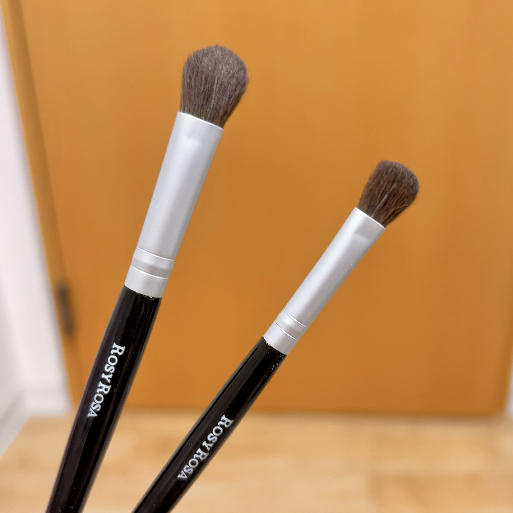 ロージーローザアイシャドウブラシセット ¥528天然毛100%のパウダーアイシャドウ専用ブラシ。大きいブラシはまぶた全体やフワッとぼかす用、小さいブラシはまぶたのキワや締め色にオススメ。チクチクせず、肌辺りが良かったです。アイシャドウをふんわ...