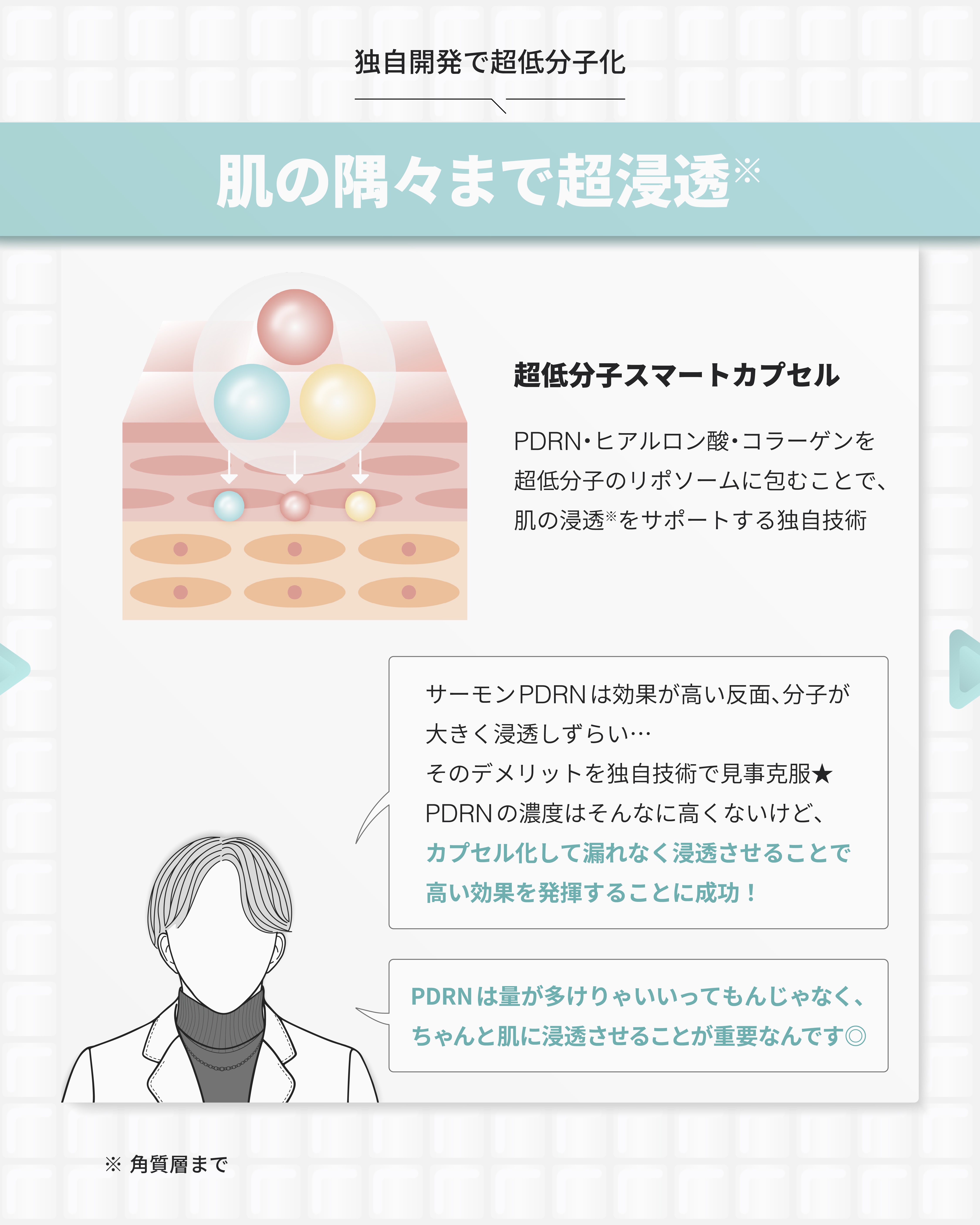 サーモンから抽出されたPDRN成分で、肌バリアを強化し、キメ・弾力を改善させたい方におすすめ! 新しいスマートカプセル技術で、スキンピュール化粧品と同じ吸収力がある名が特徴的💊 痛くなくて使えるのも良かったです。サラッと使えるので化粧前の保湿にもよいですね!