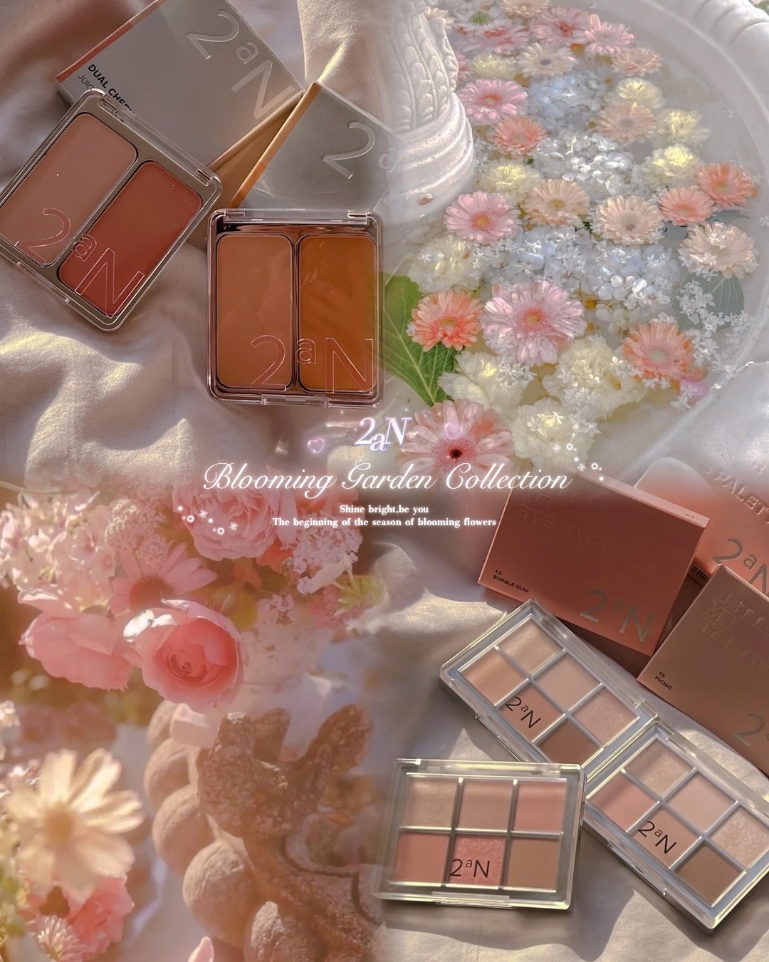 春の庭園がモチーフの2aN新作✨🌱🌼 #ブルーミングガーデンコレクション 水彩画のような透明発色でナチュラルに色づくマット×パールの【2色チーク】 どれも透明感ある繊細な色味としっとりとして粉飛びしない質感。