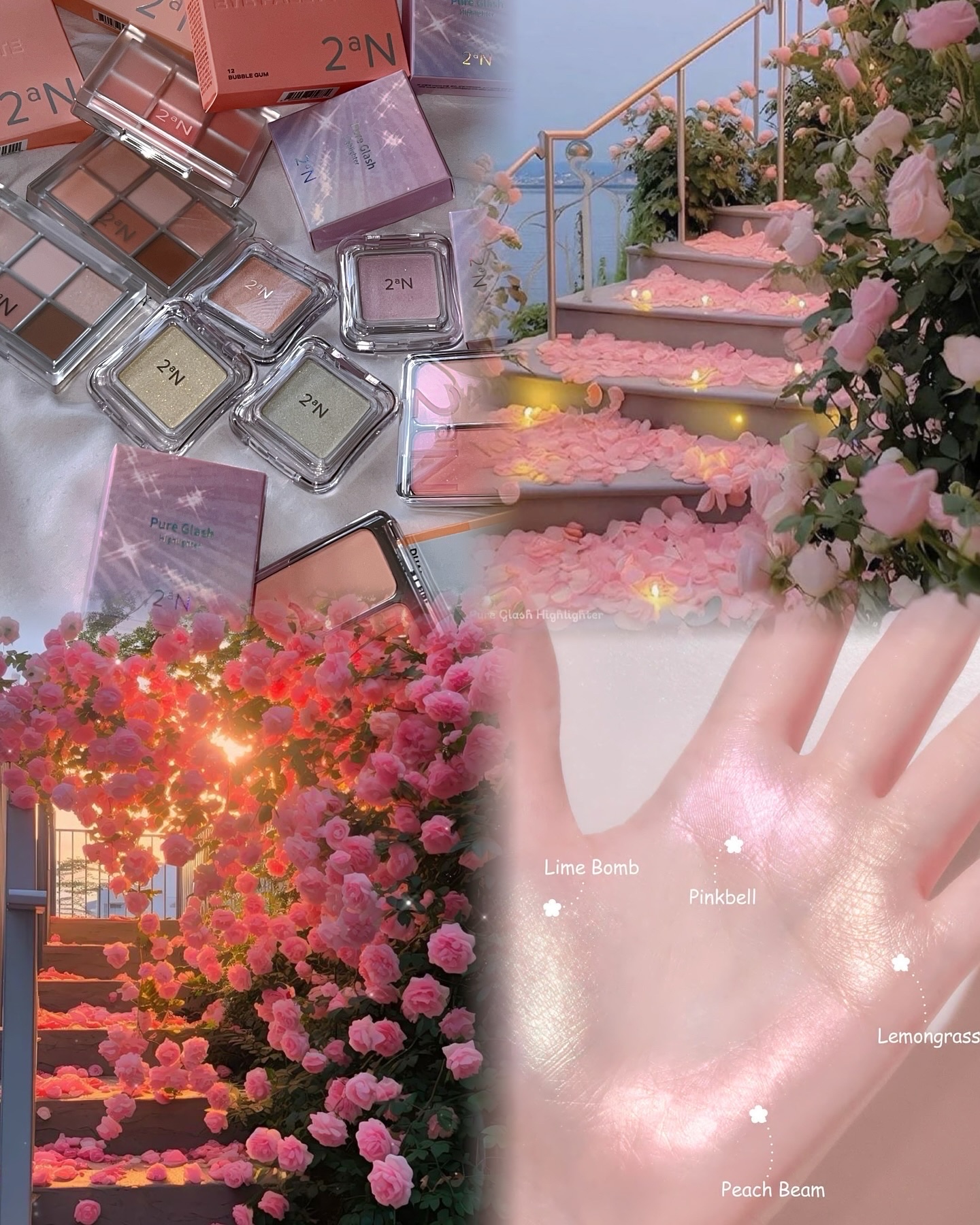 春の庭園からインスピレーションを受けた、多幸感メイクにピッタリな新作コレクション🫶🏻🪄 💐 #ピュアグラッシーハイライター しっとりなめらか密着の【ハイライター】 👒 #ベターミーアイパレット シャドウ・アイライン・涙袋までマルチに使える【6色アイパレット】