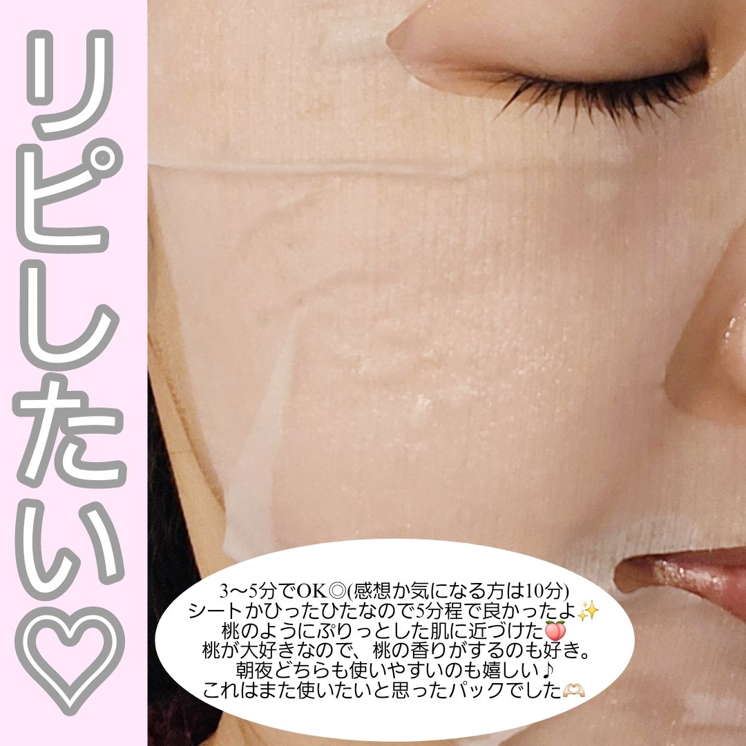 | 桃の香りがめっちゃいい香りすぎる! パック中幸せな気分になれる🍑🫧 柔らかいシートで肌にピタッと密着します。 | 詳細を見る |